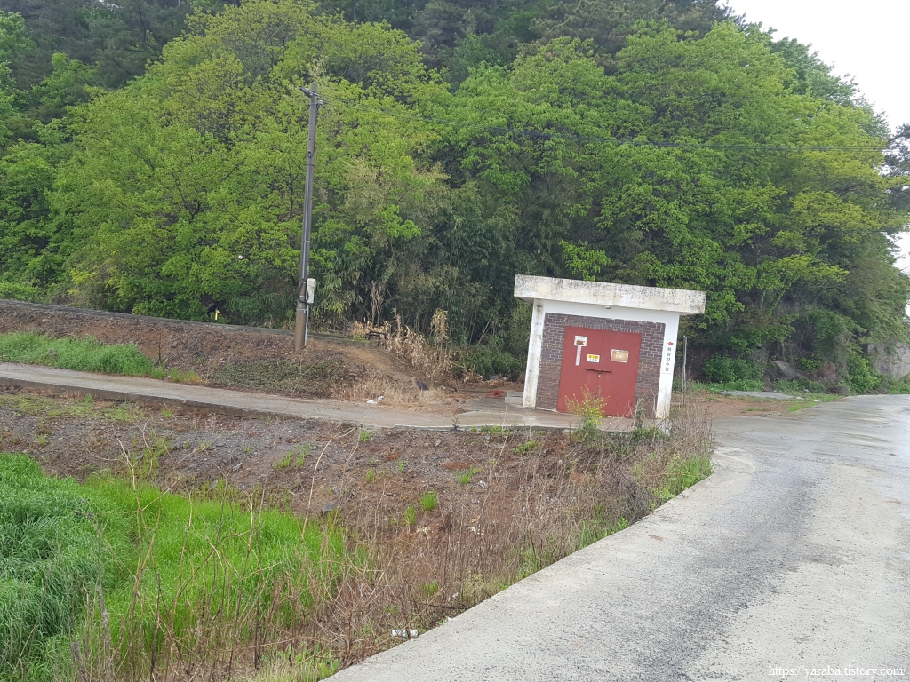 옹암마을을 빠져나가는 길, 마을 끝자락에 망주산을 배경으로 포구와 쉼터가 자리하고 있다.