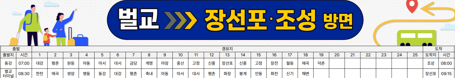 다음날 군내 버스를 타고 원등마을 정류장으로 이동하는데 암호 같은 장흥군 군내버스 시간표(https://www.jangheung.go.kr/www/jeongnamjin/directions/city_bus)에서 상발, 용산, 관산 방면의 "남하"를 경유하는 버스를 타면 된다. 06:20, 08:00 버스가 후보다.