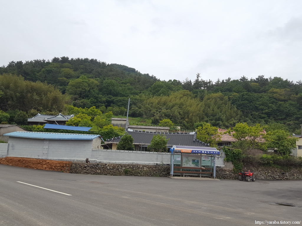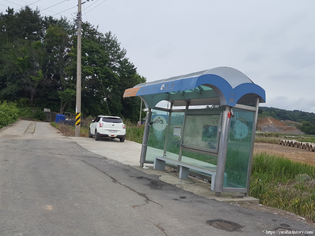 이전의 남파랑길은 마을 안쪽으로 들어가 포구까지 들려서 나왔지만 지금은 외호 마을 버스정류장을 지나 버스가 다니는 길을 따라서 마을을 빠져나가 오도 2 방조제를 지난다.