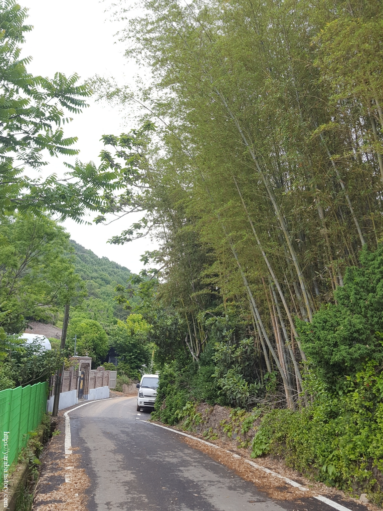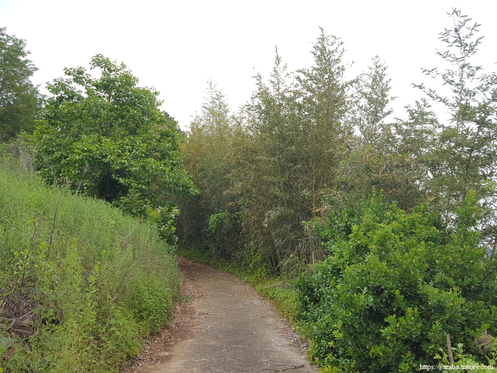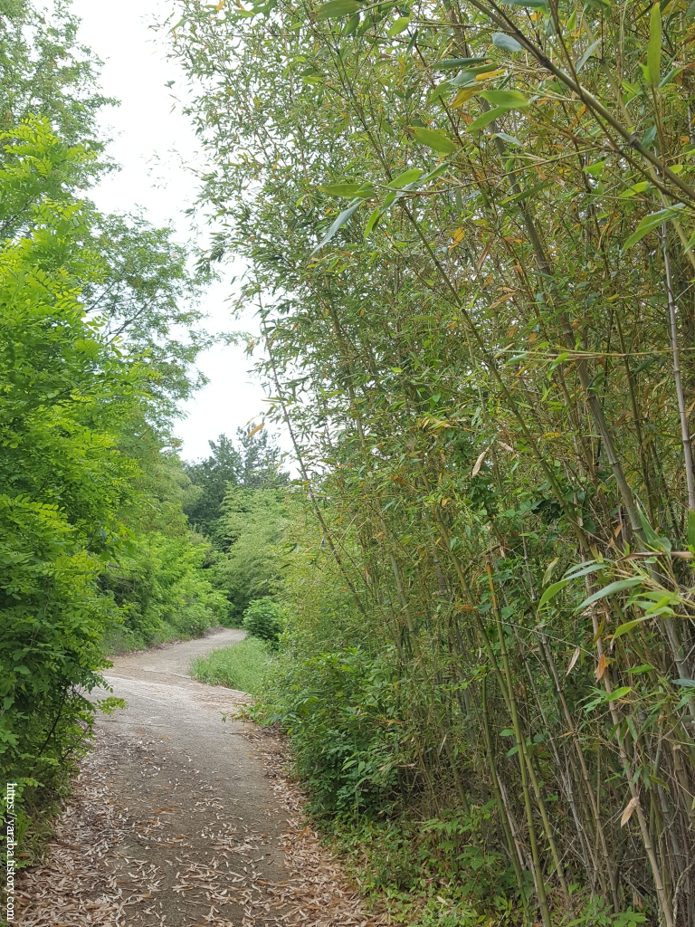연등 마을을 지난 길은 옥등산 아랫 자락의 숲길을 통해서 독대 마을로 향한다. 푸릇푸릇한 녹음이 가득한 숲길 걷기는 정말 좋다. 쭉쭉 뻗은 대나무의 활력을 받아 코스 종점을 향해 힘을 내본다.
