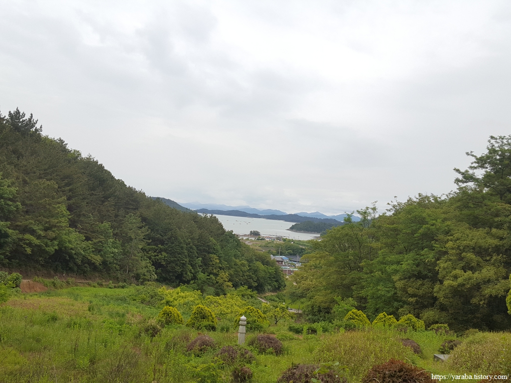 숲길을 걷다 보니 어느덧 산아래로 독대 마을과 바다가 보이기 시작한다.