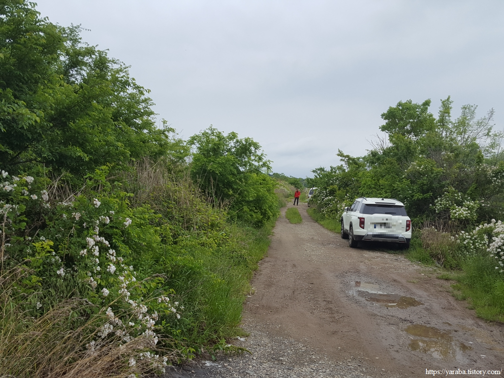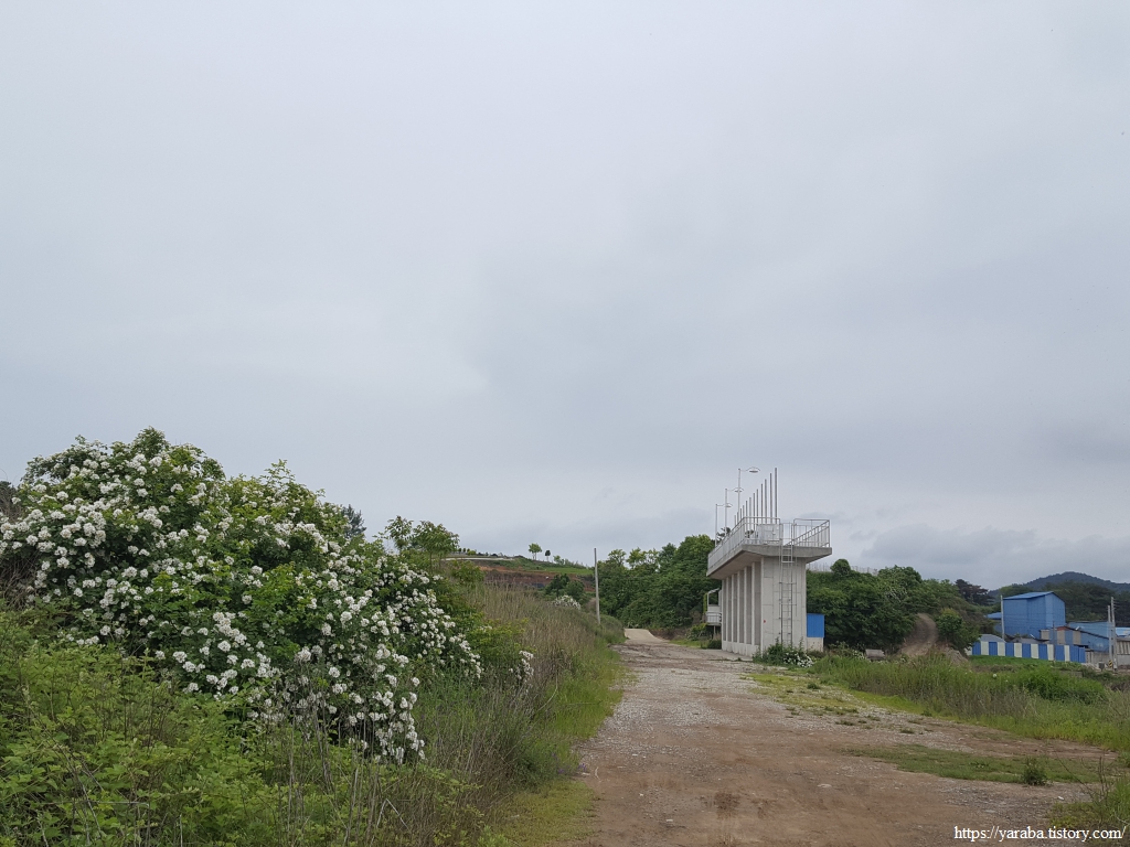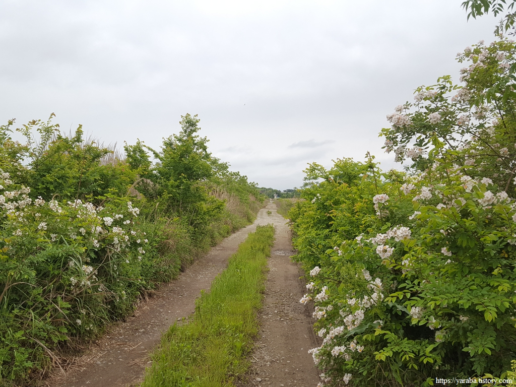 낚시꾼들로 분주한 거군지를 지나 걸어가는 오도 1 방조제 둑방길은 길가로 존재를 뽐내고 있는 찔레꽃들 덕택에 지루할 틈이 없다.