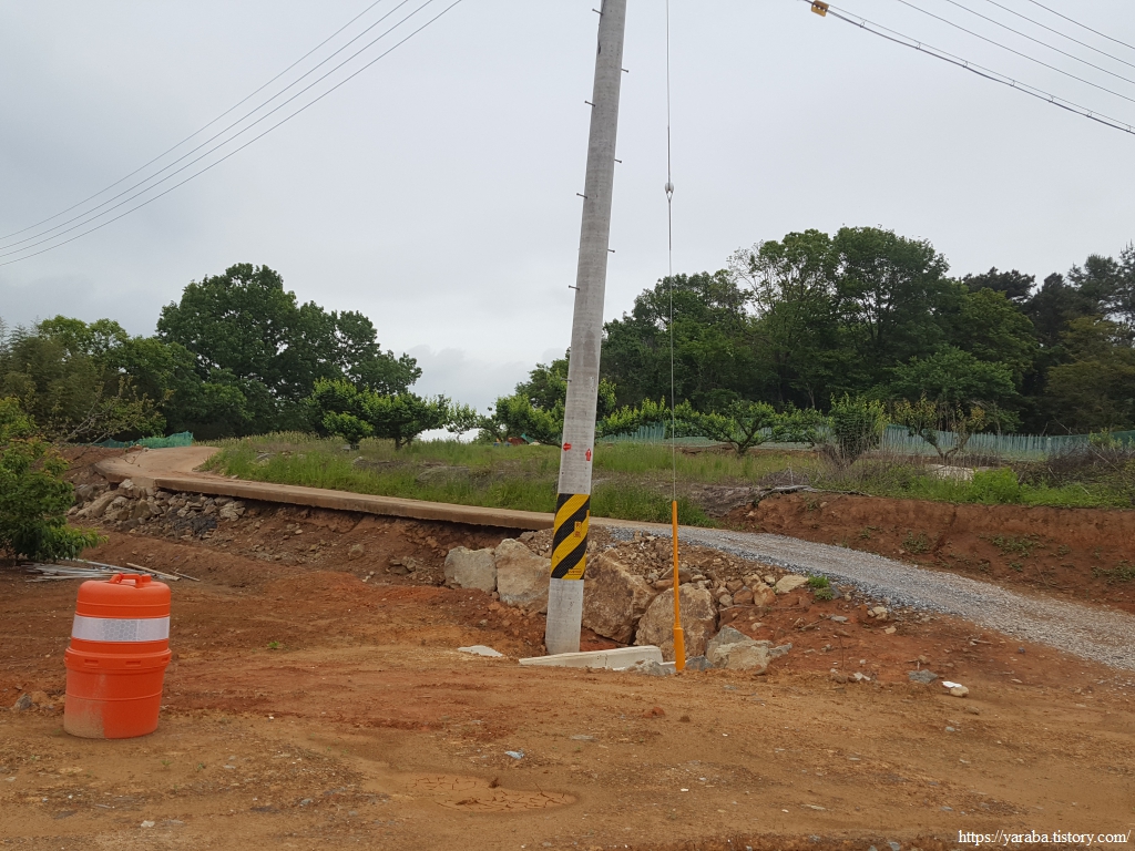 슬항 마을을 지난 고개를 넘는 길, 한 창 도로 공사 중인 현장과 슬항저수지를 지난다.
