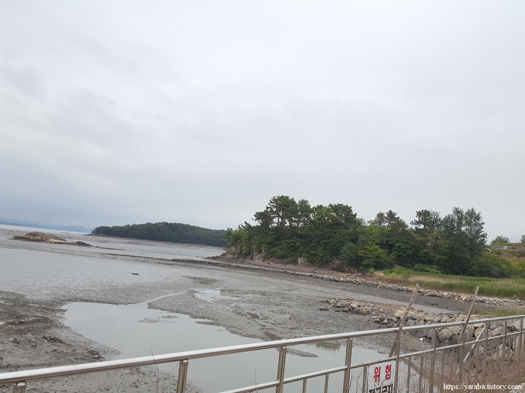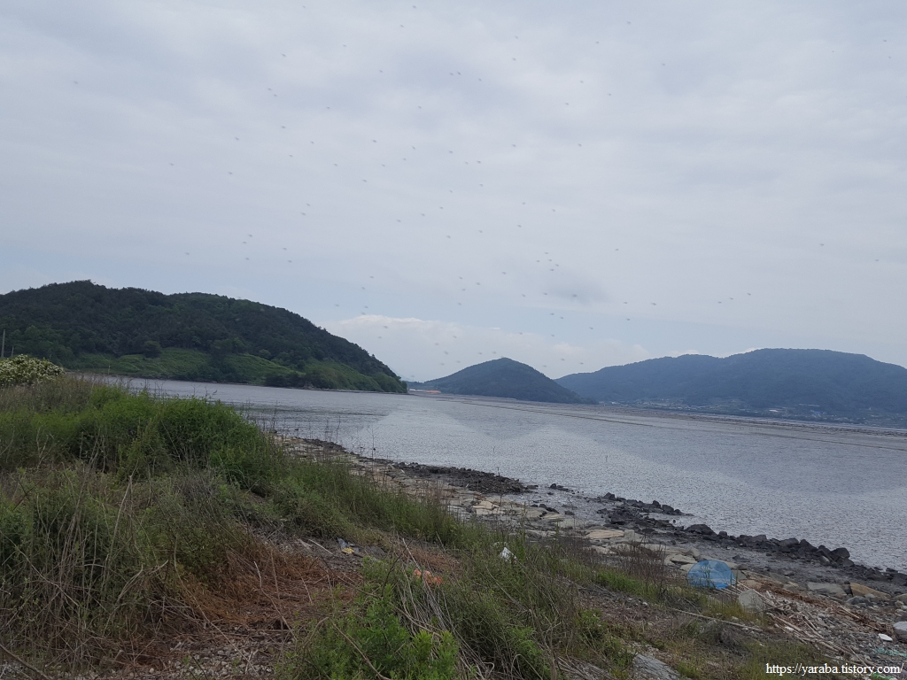1,167 미터의 오도 1 방조제를 지나면 고흥군 남양면에서 과역면 연등리로 넘어간다. 둑 위로 올라가서 여자만 바다 풍경을 돌아본다.
