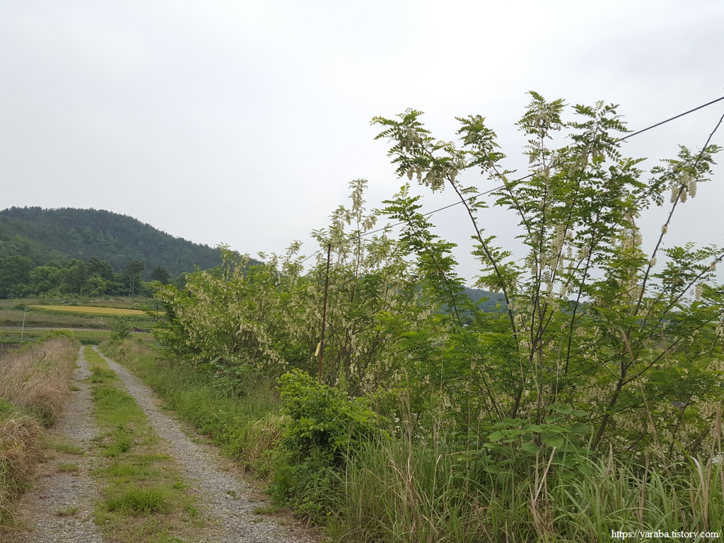들길에 탐스럽게 핀 아까시 꽃이 지기 시작하는 모습을 보니 이곳은 5월 중순에 봄의 정절을 지나 여름을 향하는 모양이다 하는 생각도 든다.