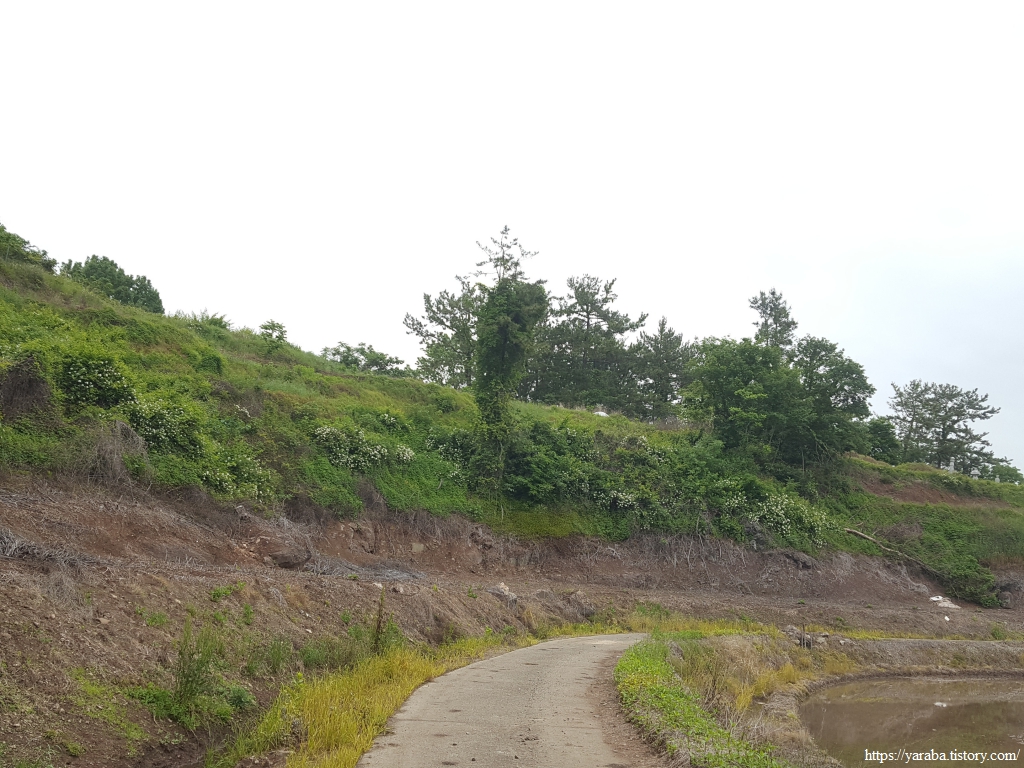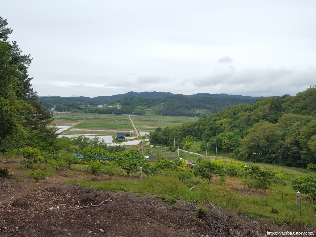 온갖 들꽃과 들풀에 눈길도 건네고, 산 아래 연등리의 평야도 보면서 길을 이어간다. 모내기를 위해서 물을 댄 논들은 거울처럼 보인다.