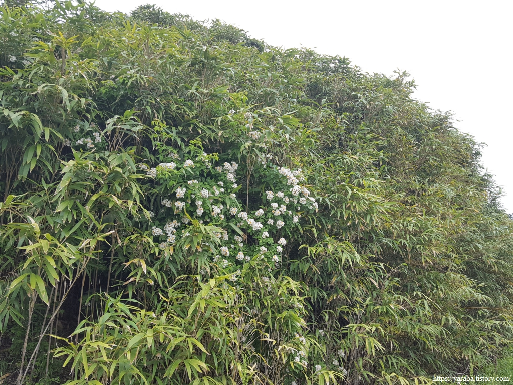 농부들이 작물을 심지 못하는 급한 경사면에는 조릿대와 찔레가 자리를 함께하고 있다. 하얀 꽃과 향기가 없었다면 조릿대 속에 섞여 그 존재를 몰랐을 텐데 꽃과 향기 덕택에 찔레를 주목하게 된다.