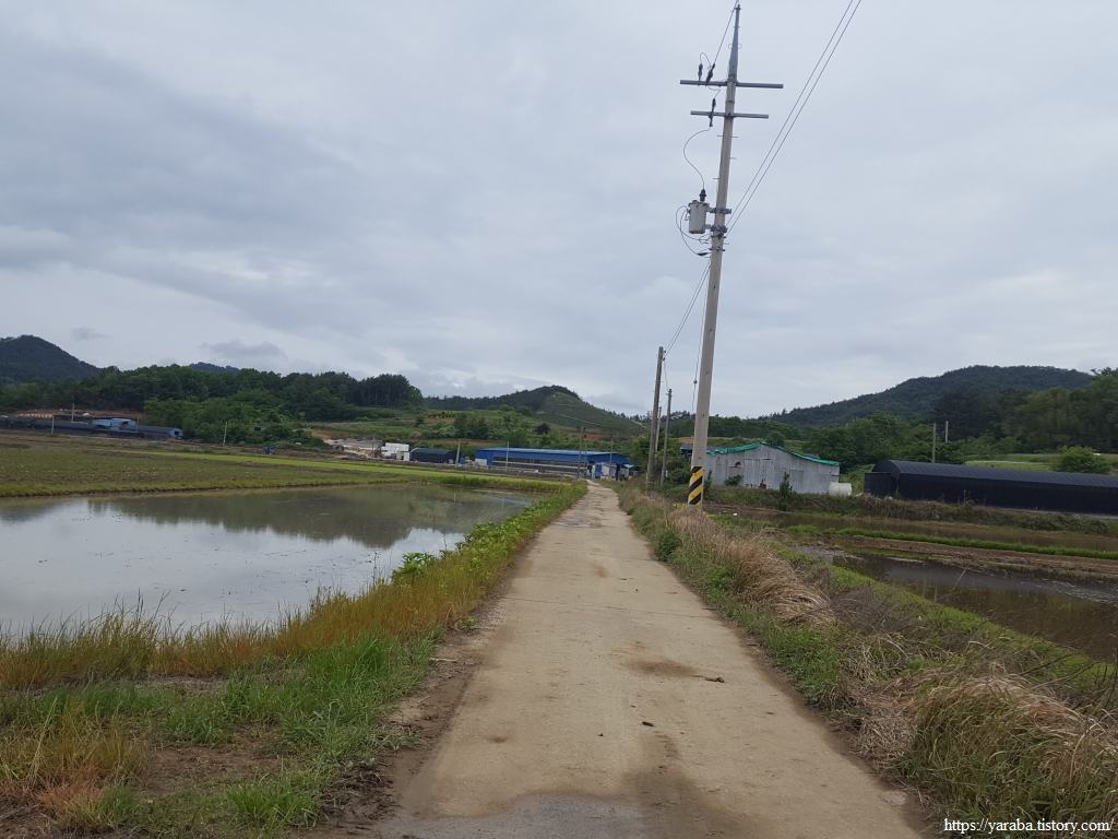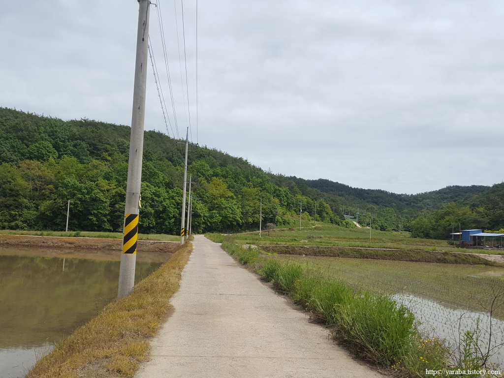 화덕 마을을 빠져나온 길은 농로를 가로질러 송곳산 방면으로 길을 잡는다.