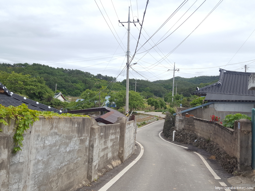 화덕 마을의 골목길을 빠져나간다. 화덕 마을이라는 이름은 마을 뒷산이 화로처럼 생겼다고 붙인 이름이라고 한다.