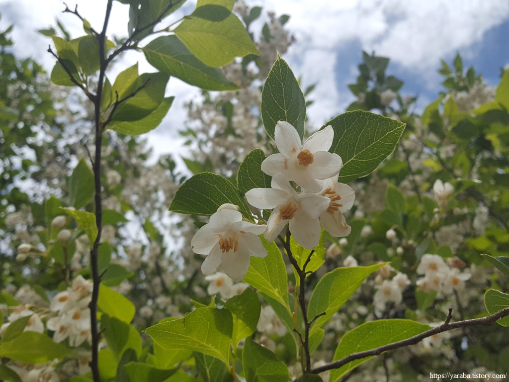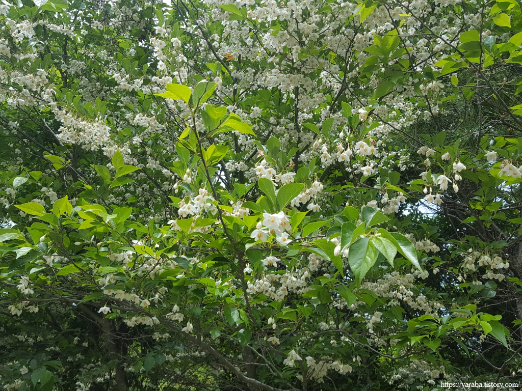 아파트 화단에서 만났던 때죽나무를 나무가 원래 있어야 할 산에서 짙은 향기와 함께 만났다. 나무껍질이나 열매를 갈아서 냇물에 풀면 마취 성분 때문에 물고기가 떼로 죽는다고 때죽나무이다.