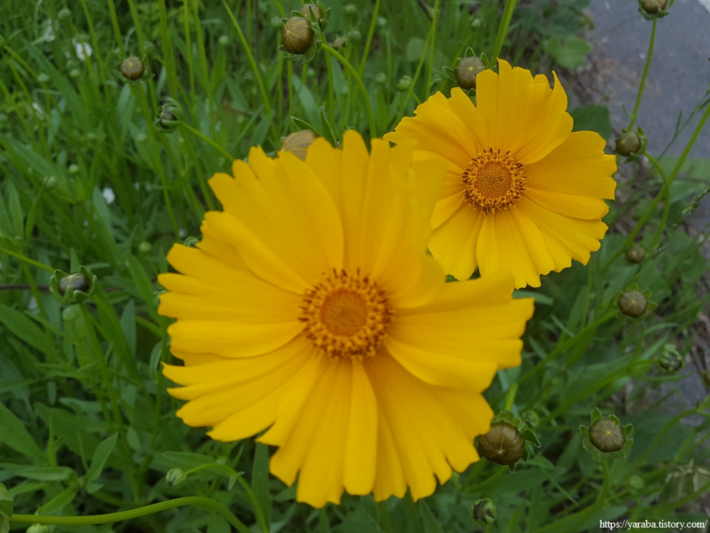 길가에는 큰금계국이 노란 꽃을 피웠다. 고흥 여행 내내 우리와 함께 자주 만날 꽃이다. 북아메리카 원산으로 관상용으로 키우던 것이 야생화되었다고 한다. 여러해살이 풀에 번식력과 생명력 또한 대단한 식물이다 보니 생태 교란 식물로 지정하는 것에 대한 논란이 있는 모양이다. 어린것은 나물로 먹을 수 있고 꽃은 꽃차로도 활용할 수 있다는 이야기가 있다. 이에 반해서 비슷한 금계국은 한두 해살이 풀로 큰금계국과 달리 붉은 반점이 있는 차이가 있다.