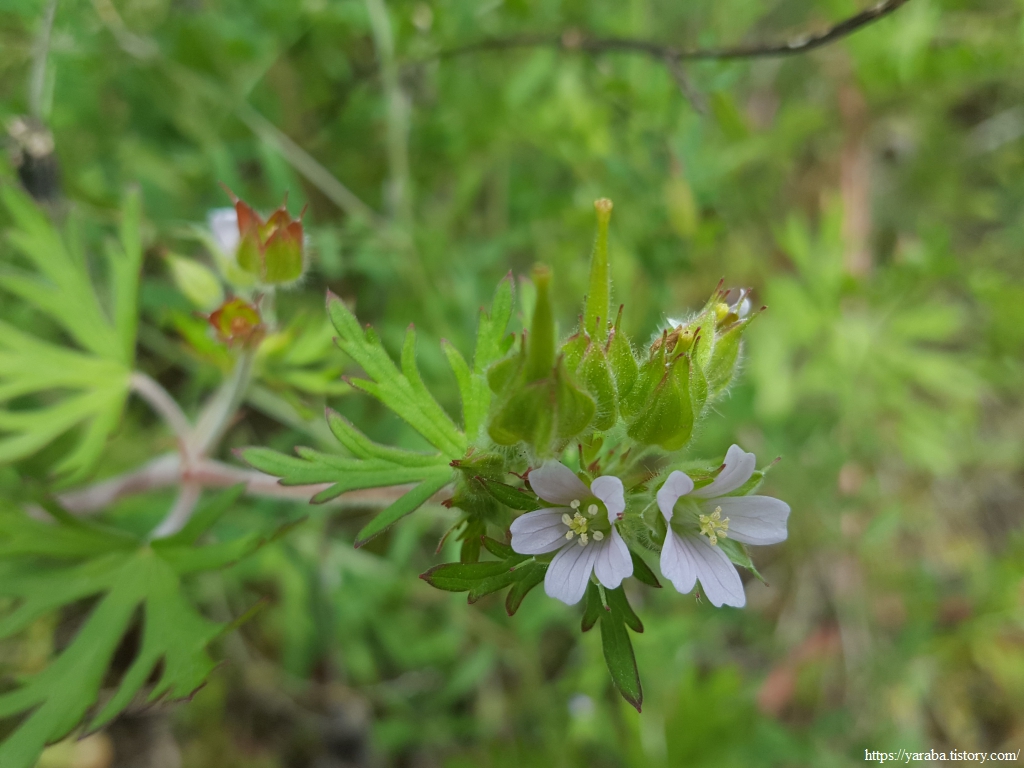 이 또한 처음 보는 꽃이다. 북아메리카 원산의 한해살이 풀인 미국 쥐손이풀이다. 잎 모양 때문에 붙은 이름이다.