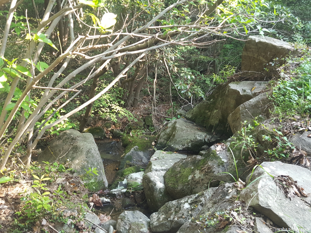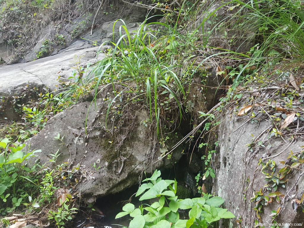 우미산 정상의 역방향으로 내려가는 길, 울창한 숲길은 가끔씩 지나는 작은 계곡에서 이끼가 가득한 바위들을 만나게 한다.