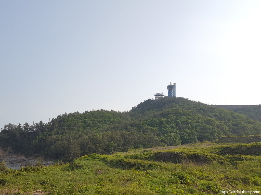 길은 전망대를 보면서 해변을 따라 전망대 방향으로 이동한다.