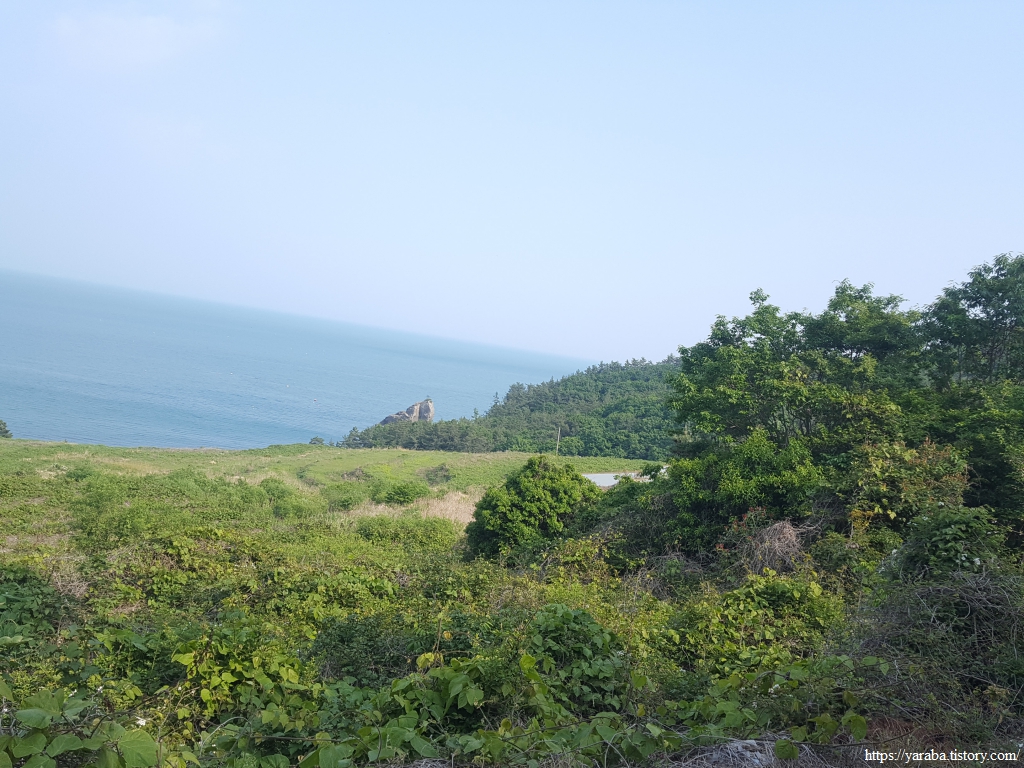 언덕 위에서 바라본 남열 해변의 모습이다. 오래간만에 보는 수평선을 여기에서 만난다.