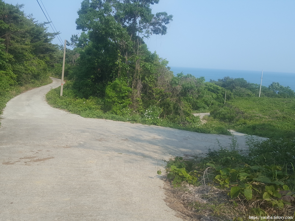 해맞이로 도로로 내려와서 우측을 보면 전망대 주차장이 있고 그쪽으로 가면 전망대로 바로 갈 수도 있지만 남파랑길은 반대 방향으로 내려가 남열 해변을 거쳐서 전망대로 다시 올라간다. 계단 오르막이 싦다면 생략할 수도 있겠다. 그렇지만, 생략한다면 다랭이 산책로와 몽돌 해변은 놓칠 수밖에 없다.