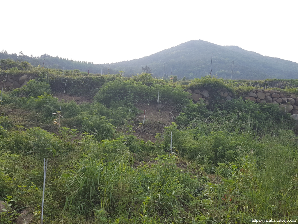 다랭이논 주위 빈 공간에는 묘목을 심은 모양이다. 지금은 그냥 풀밭으로 보일 수도 있지만 나무가 뿌리를 내리고 키를 키우면 이곳 경관을 바꿀 주인공이 될 수도 있을 것이다. 나무 심기는 분명 미래를 세대를 위한 투자다.
