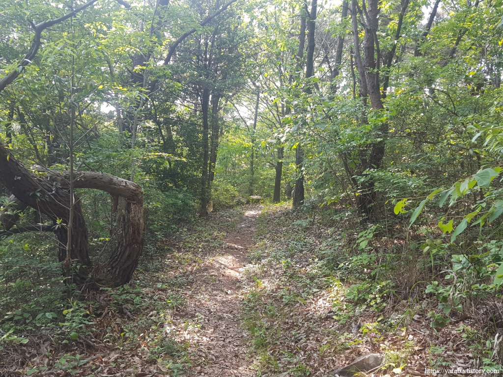 천년의 오솔길은 가끔씩 나무 그늘 없이 뚫린 하늘을 보는 것이 반가울 정도로 숲터널의 연속이다.
