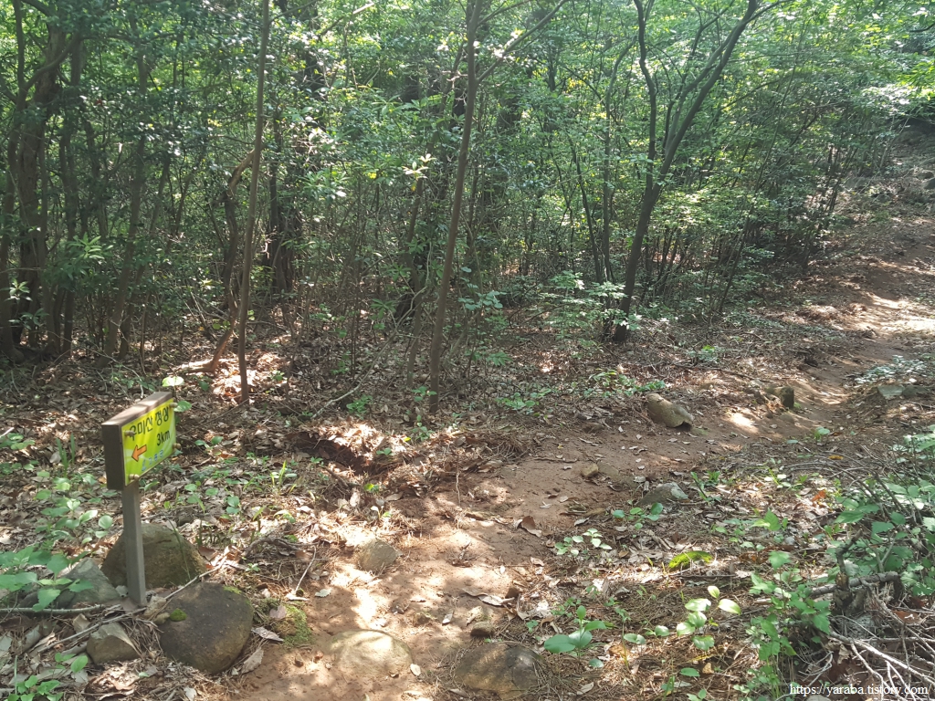 길은 제1 삼거리를 지난다. 우리는 곤내재 고개를 향해서 내려가지만 곤내재 쪽에서 올라올 경우 우미산 정상으로 빨리 갈 수 있는 경로도 이곳에서 갈라진다.