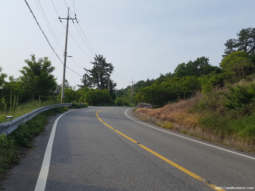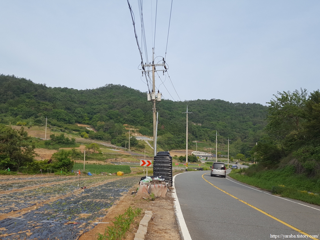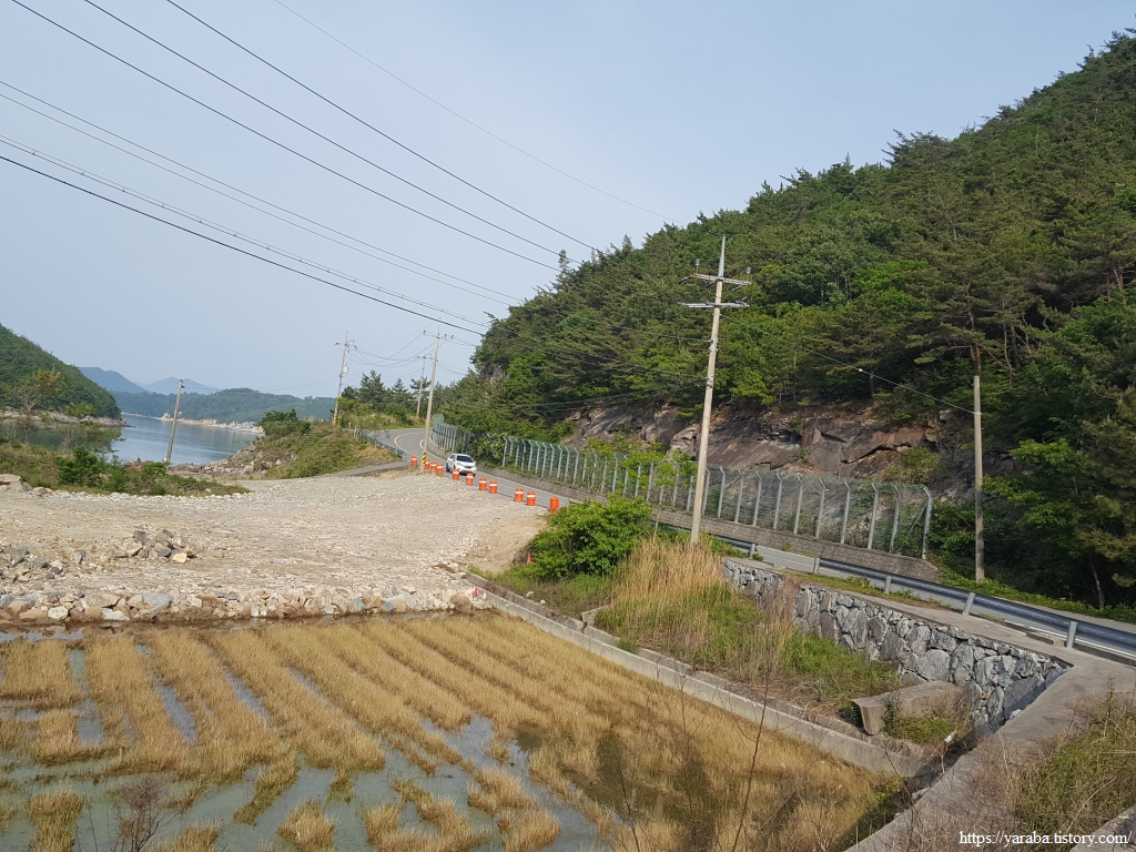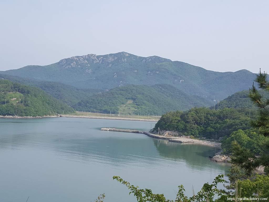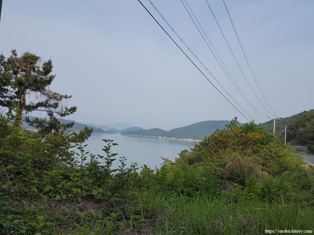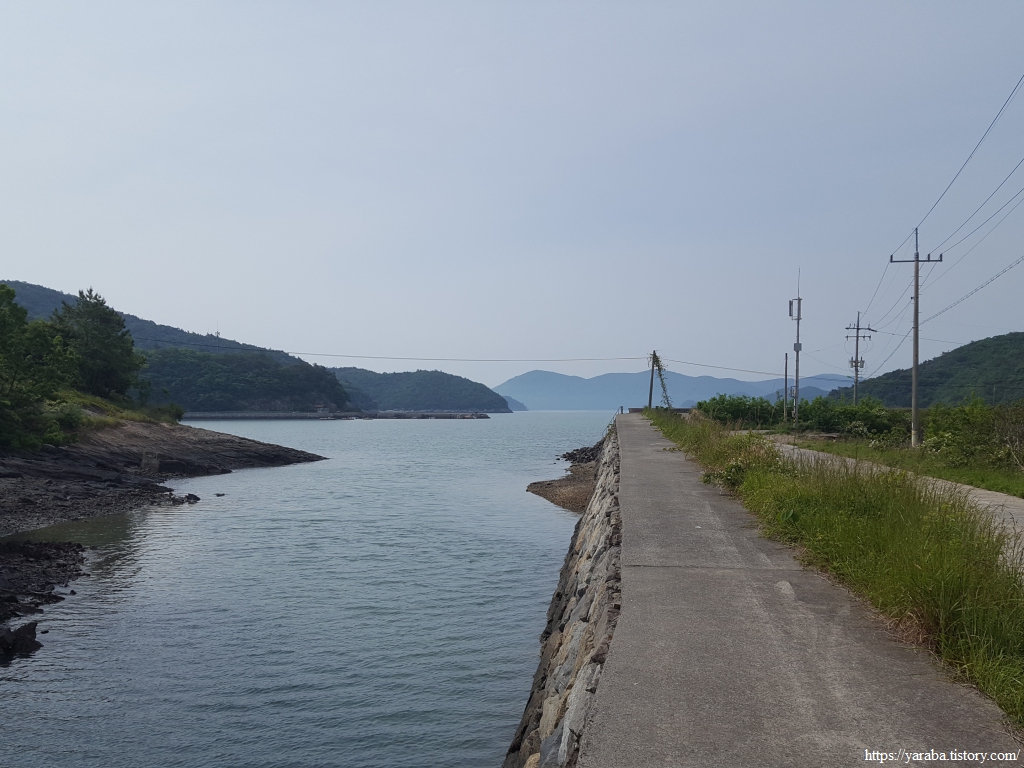 이따금씩 보이는 해창만의 절경을 감상하며 이른 아침의 상쾌한 걷기를 이어간다. 도로변을 걷기는 하지만 평일이라 지나는 차도 많지 않고 갓길도 어느 정도 확보된 길이라 걷는데 불편하지 않았다.