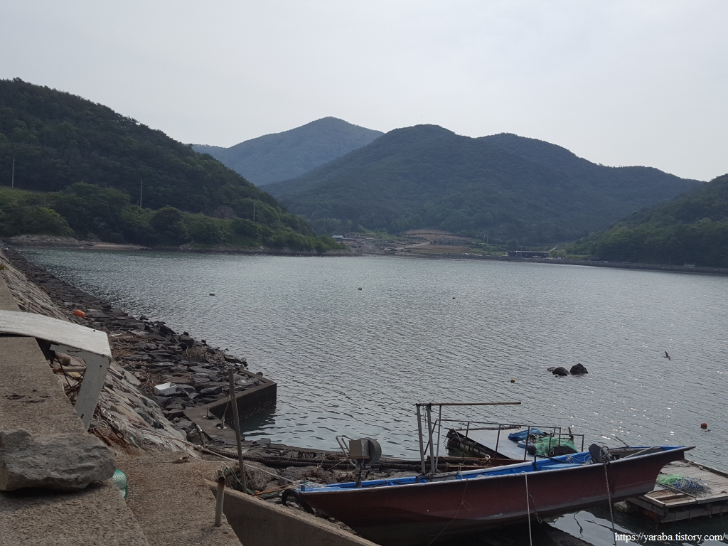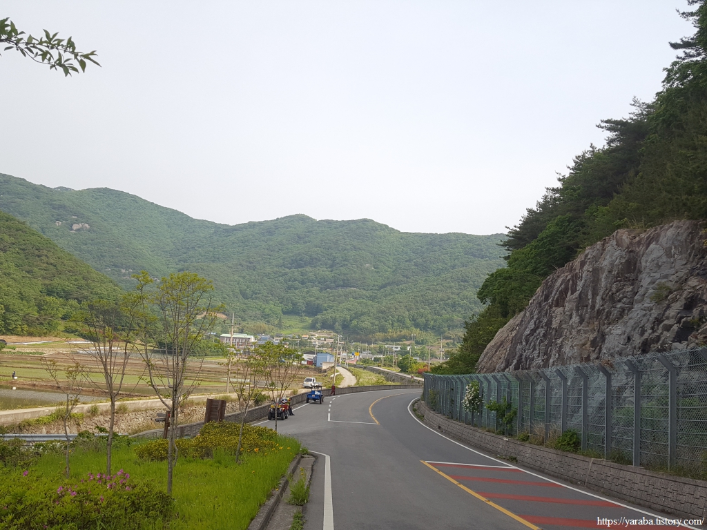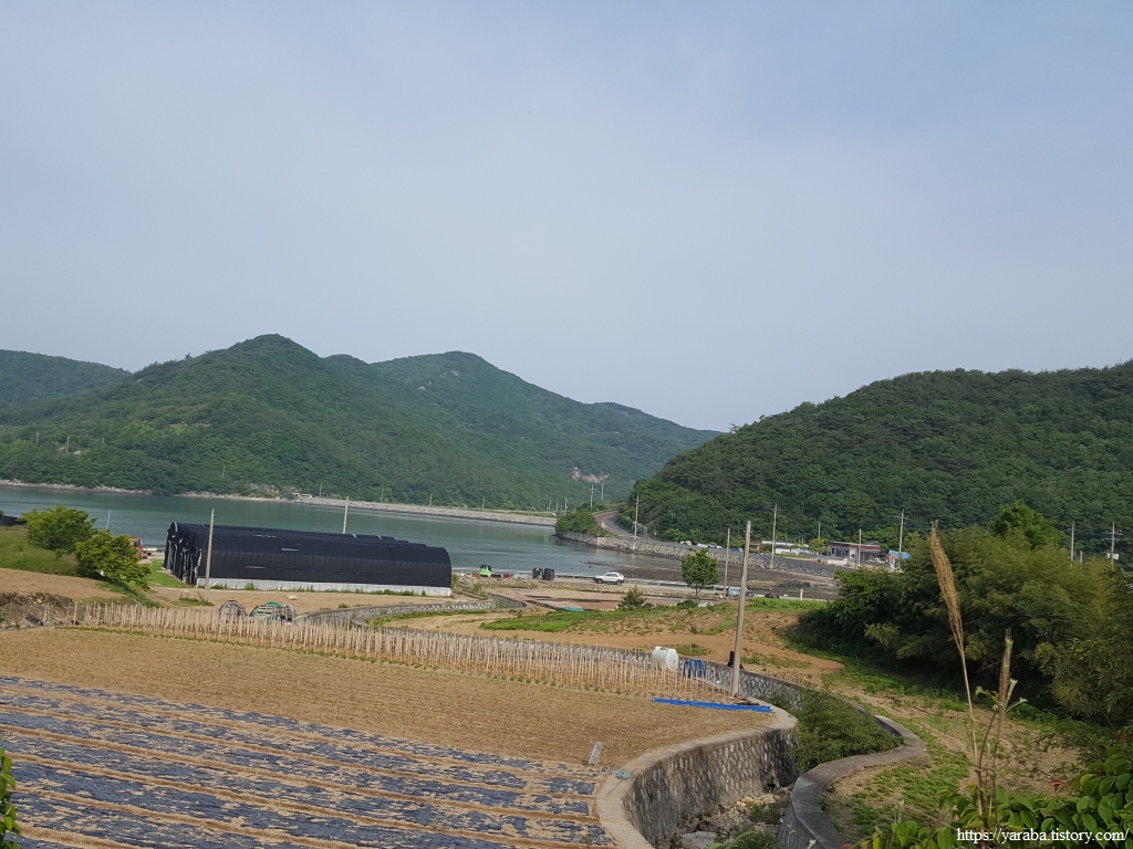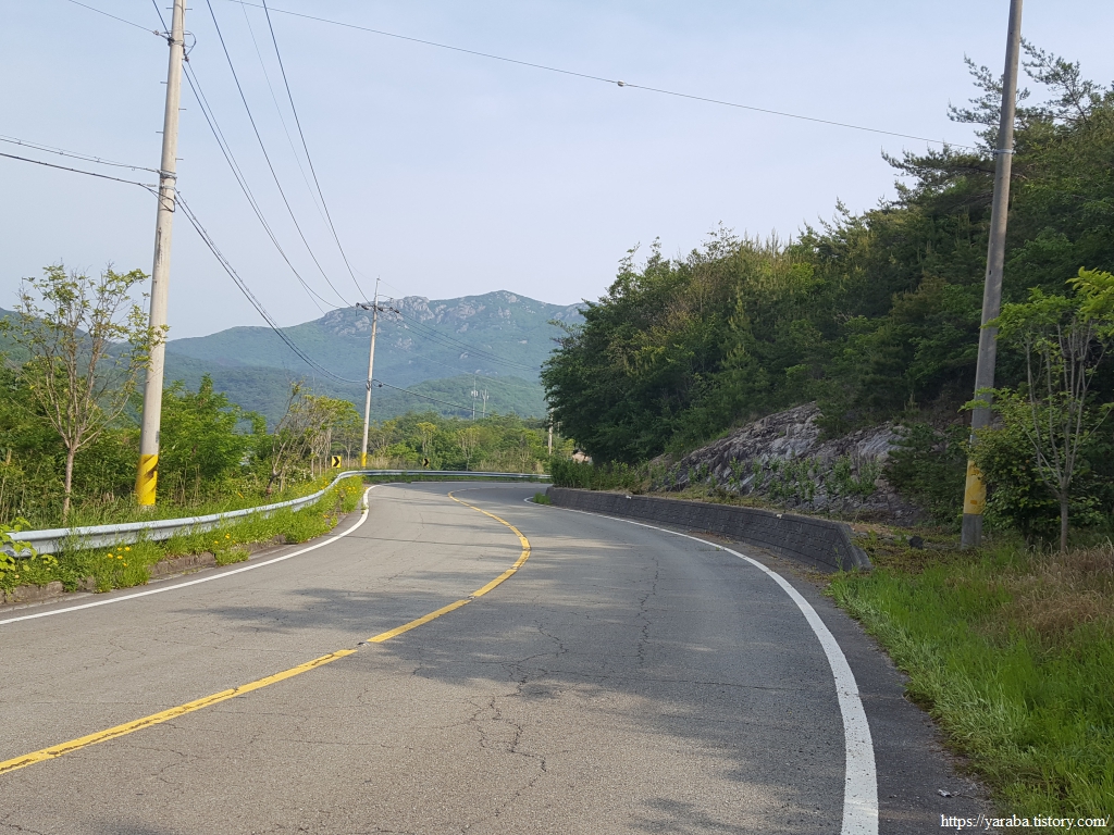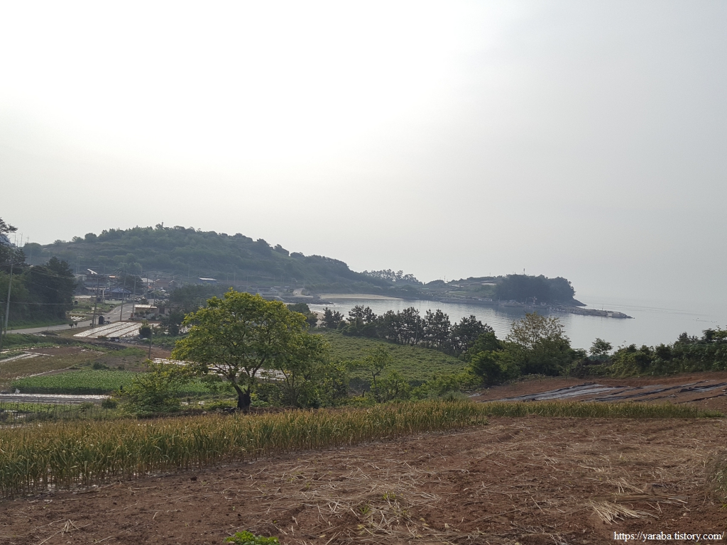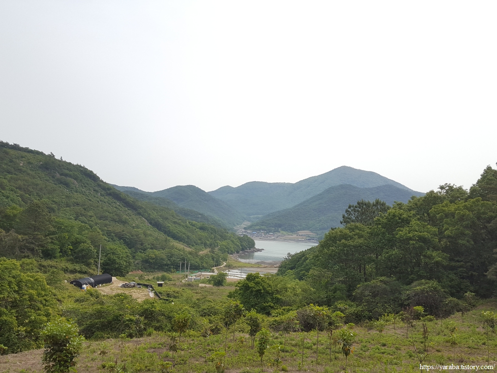 이따금씩 보이는 해창만의 절경을 감상하며 이른 아침의 상쾌한 걷기를 이어간다. 도로변을 걷기는 하지만 평일이라 지나는 차도 많지 않고 갓길도 어느 정도 확보된 길이라 걷는데 불편하지 않았다.
