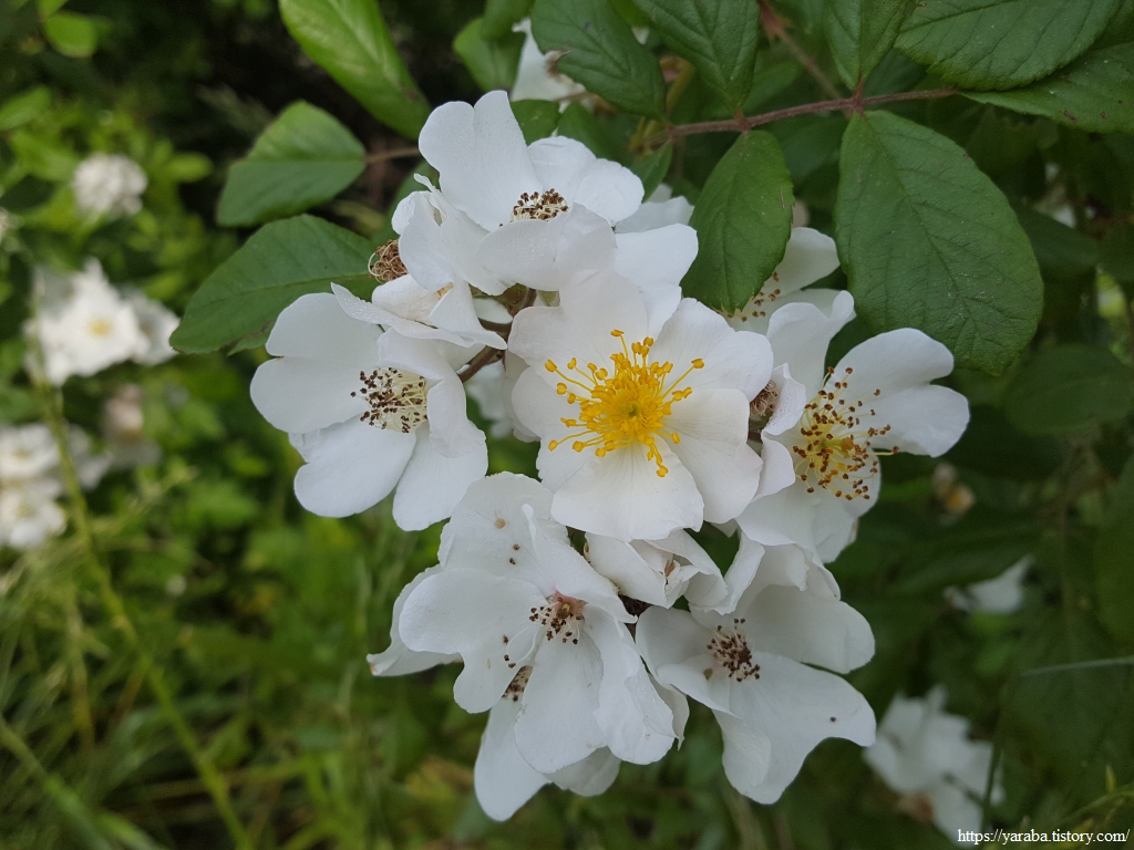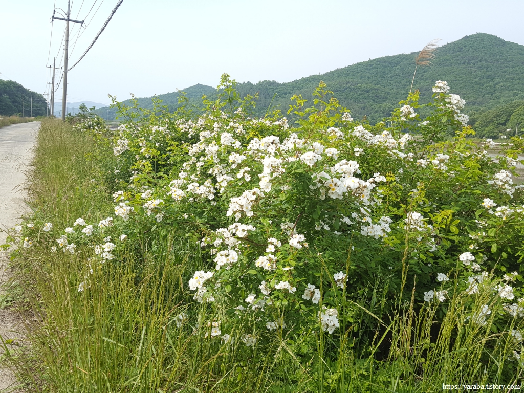 이번 여행은 곳곳에서 하얀 찔레꽃과 감미로운 향기를 맡으며 걷는 "찔레를 만나는 여행"이라 해도 과언이 아니다. 꽃이 없으면 그저 가시덤불이라고 눈길도 주지 않았을 텐데, 지금은 지루할 수 있는 삭막한 코스에서 걷는 이의 마음을 바꾸는 마법을 부리는 존재이다.