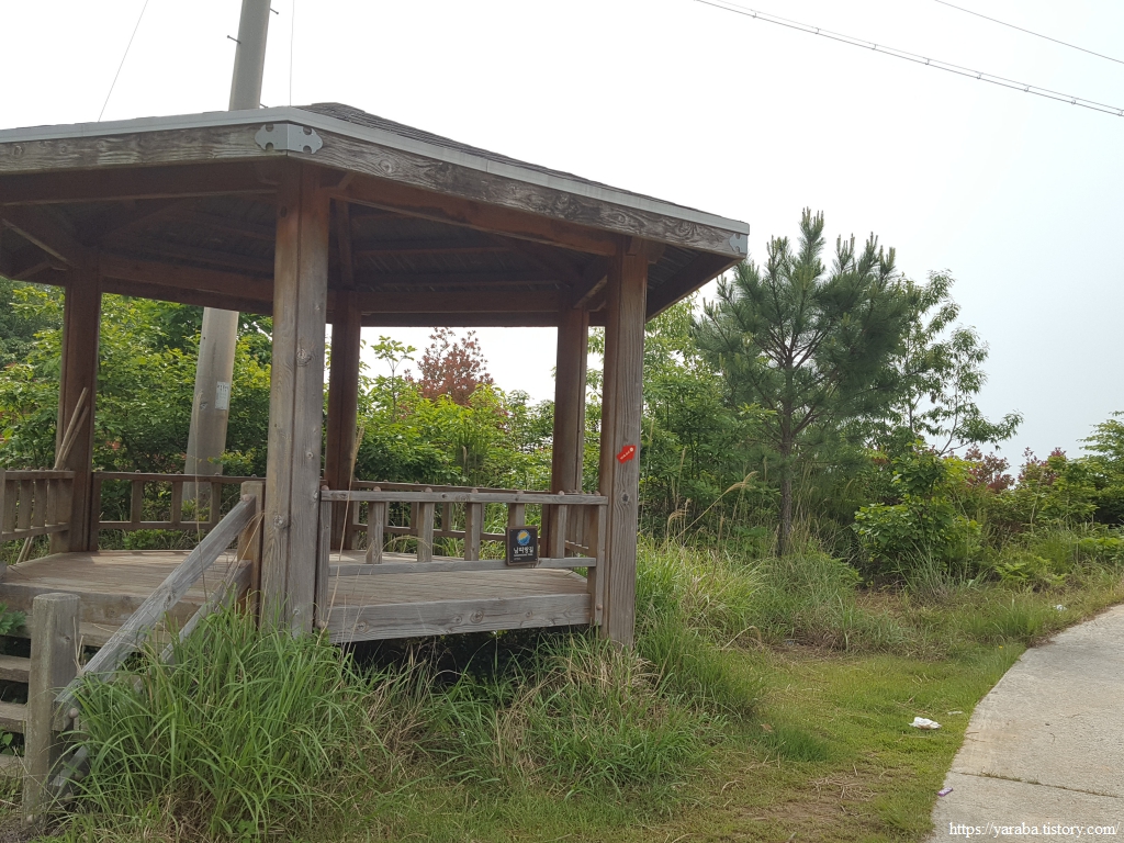 해안을 따라 이어지는 사도진 해안길을 걷고 있지만 쉼터에서도 길에서도 해창만 바다를 보는 것은 쉽지 않다. 나무들이 가림막을 하고 있어서 까치발을 들어도 탁 트인 바다를 보기는 무리다.