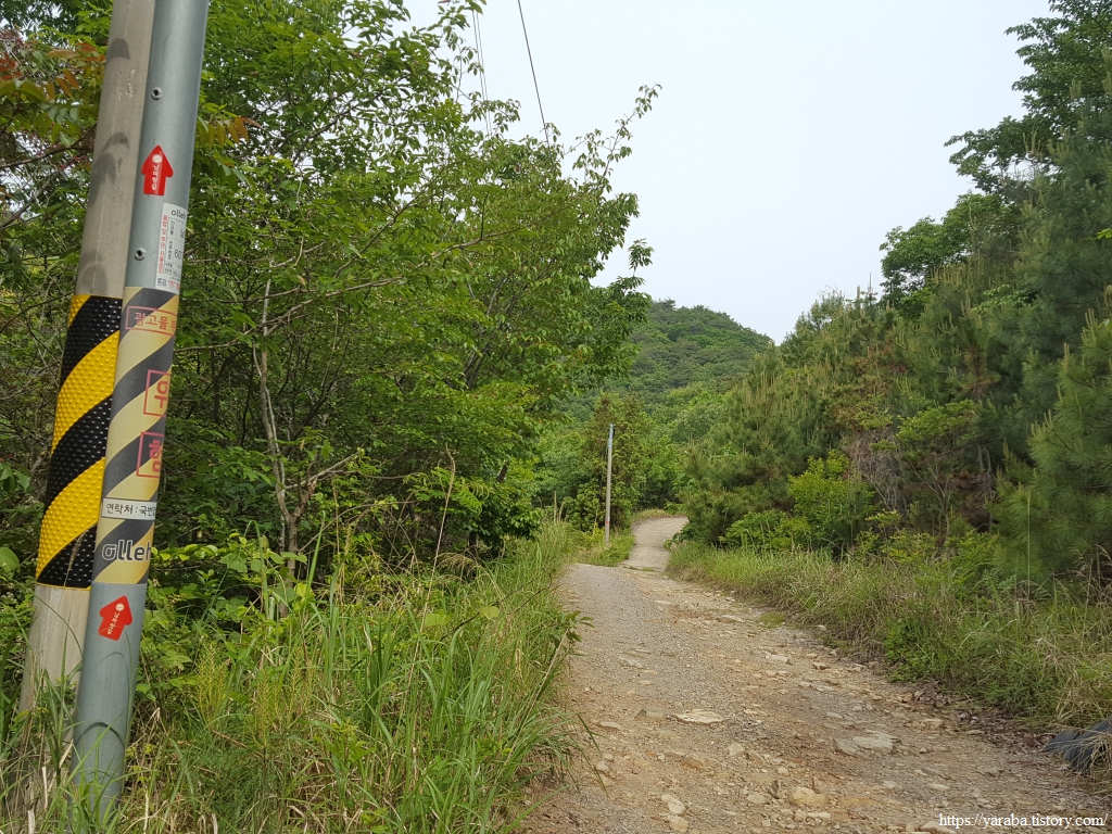 숲과 바다만 보며 걷는 길, 전봇대가 있다는 것은 인근에 민가가 있겠구나 하는 추측을 하면서 길을 이어간다.
