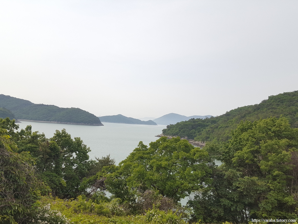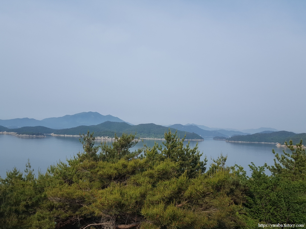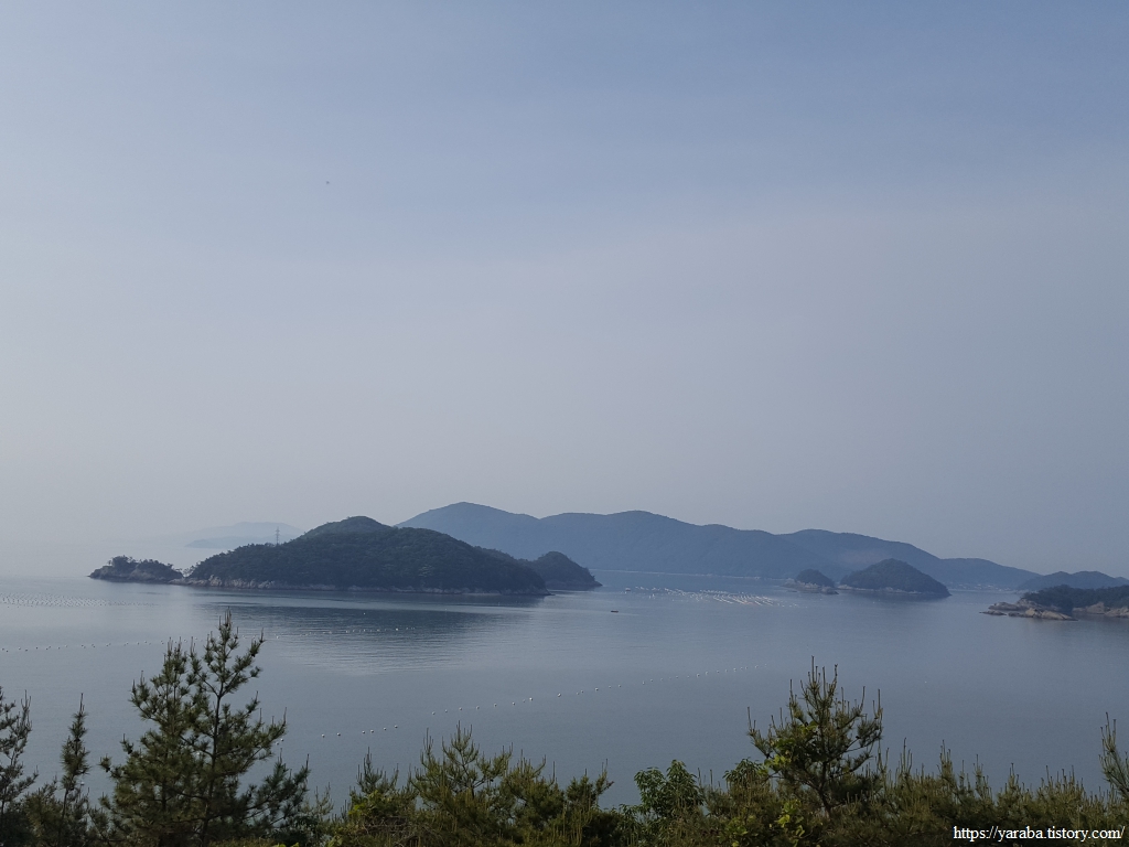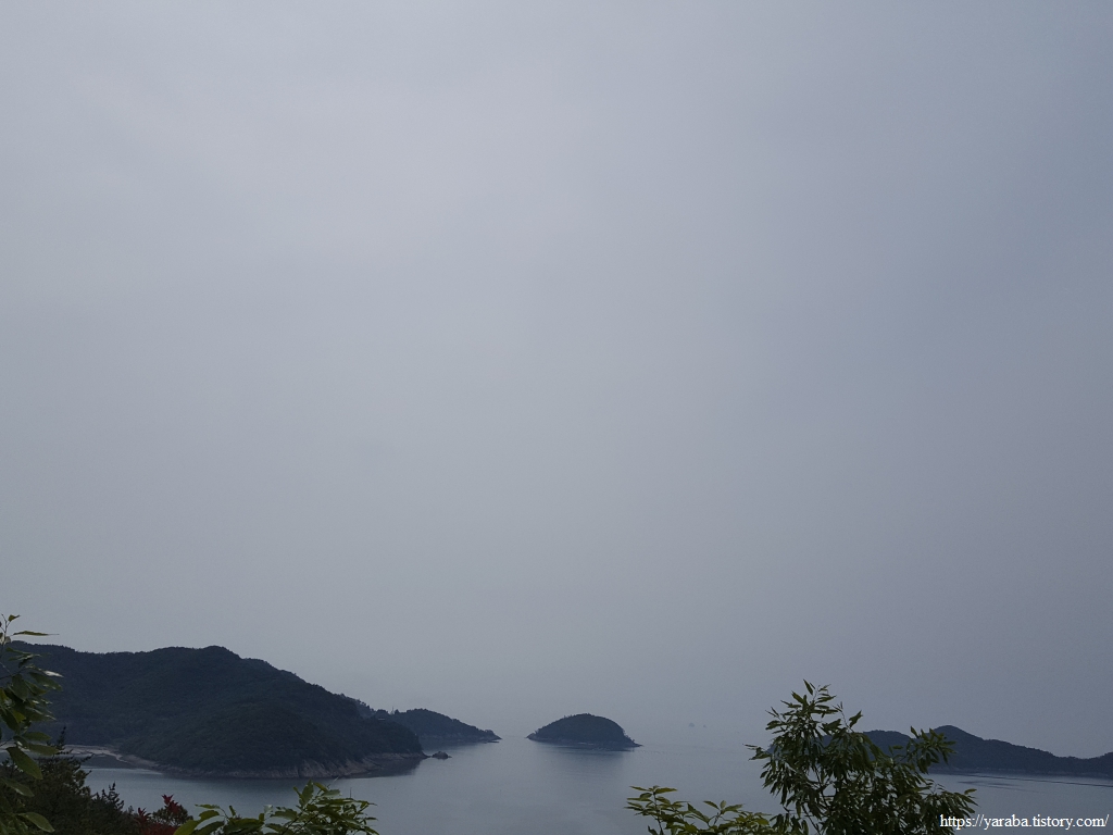정면으로는 태양의 섬이라는 태옥태도이고 뒤로 큰 덩어리 내나로도이다. 우주 센터가 있는 외나로도는 가물가물하다. 우측으로는 까막섬이라는 오도가 그나마 잘 보인다.