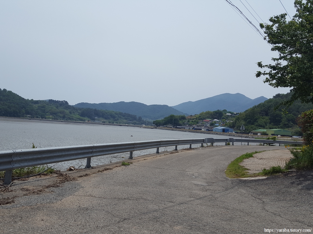 오도로 들어가는 길 저 멀리 담수호 너머로 마복산(535m)이 눈에 들어온다. 해창만 제1 방조제의 오도 쪽 배수갑문을 지나면 좌회전하여 오도 외곽으로 들어간다.