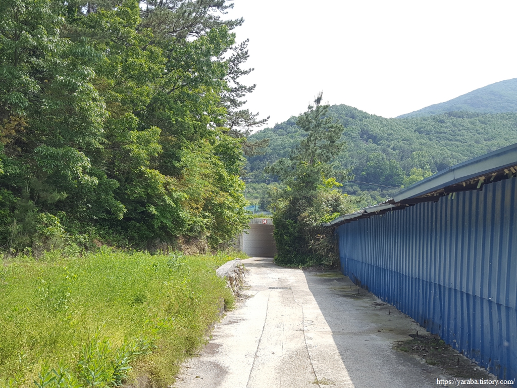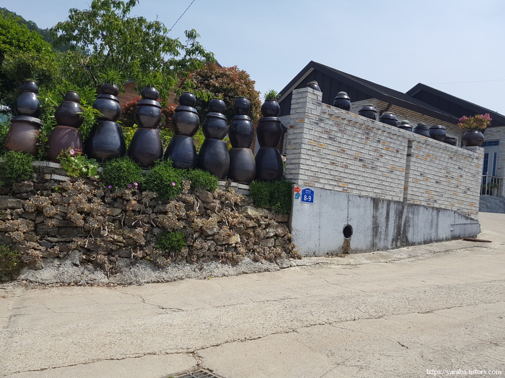길은 벽을 항아리로 장식해 놓은 농장 앞에서 우회전하여 마북산을 보면서 남쪽으로 농로를 걸어 내려간다. 항아리 장식을 해 놓은 농장은 포두팜이라는 이름으로 귀농한 부부가 샤인머스켓을 재배한다고 한다.