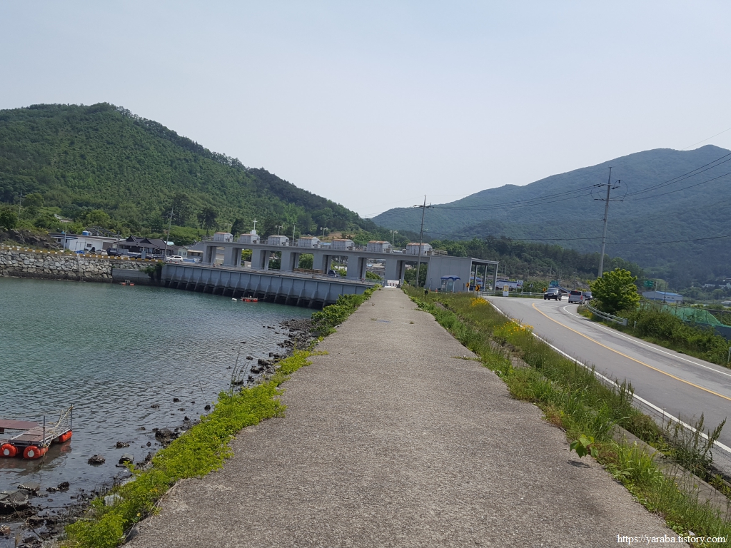 오도의 끝자락에 있는 신오 마을을 지나면 다시 좌회전하여 해창만 제2 방조제 둑방길을 걷는다.