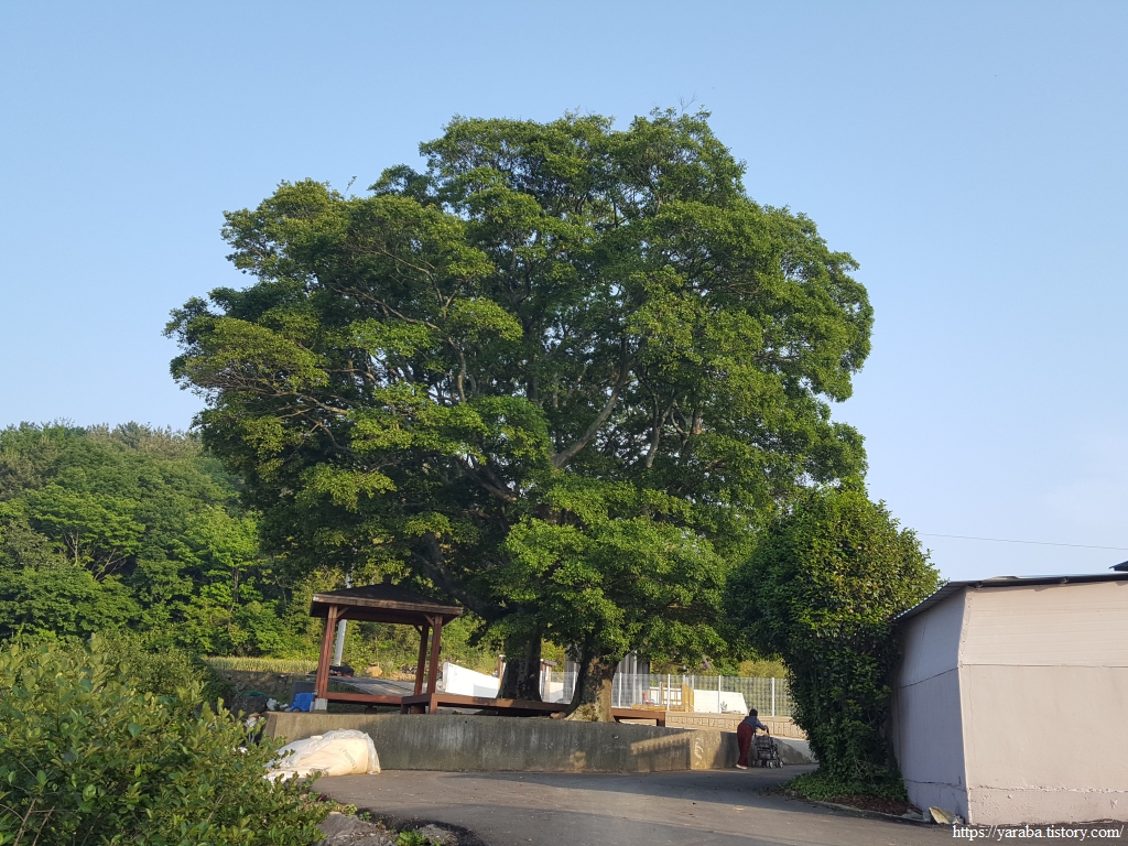 마을 꼭대기에 있던 쉼터의 나무는 정말 인상적이었다. 나무 두 그루가 만들어내는 그림이다. 시간은 늦었지만 또, 잠시 쉬어간다.