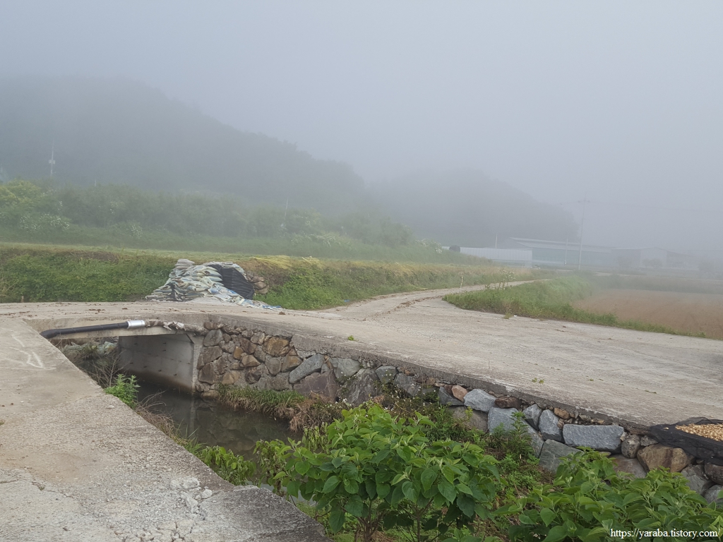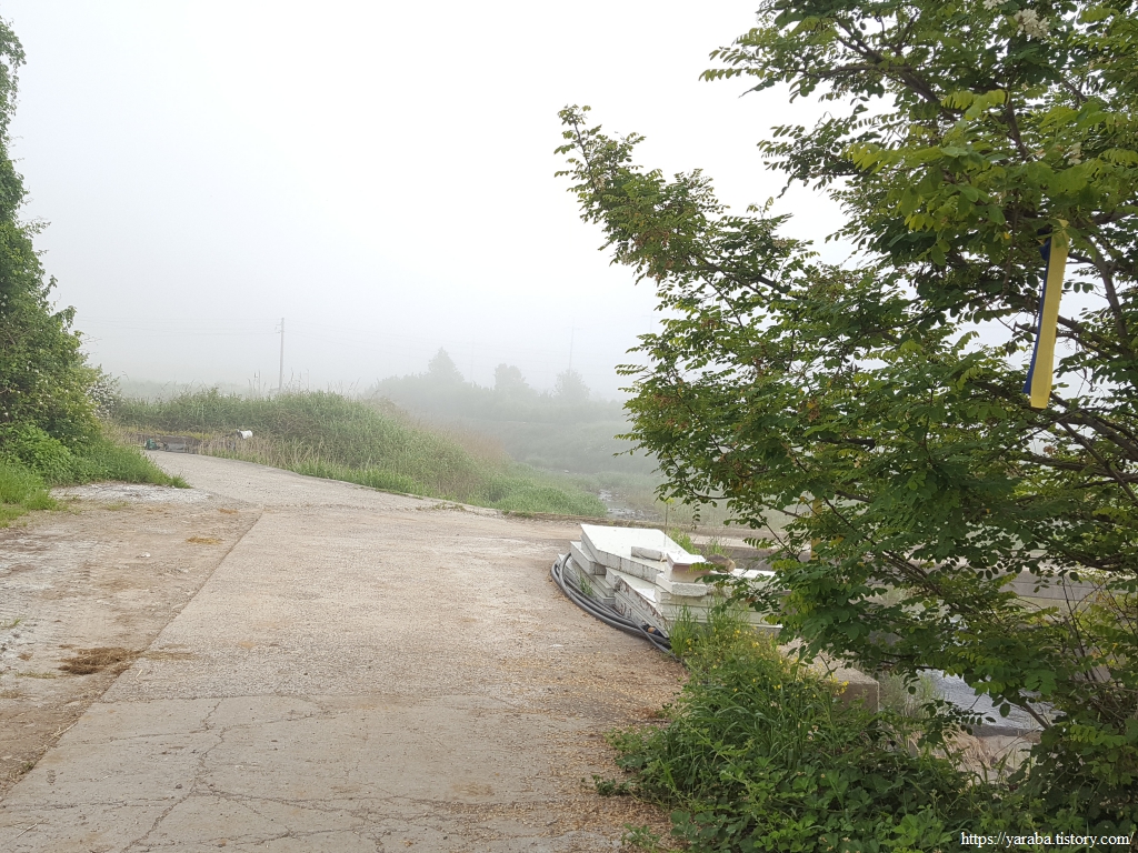 안개인지 해무인지 뿌연 시야를 뚫고 도화천을 따라 올라간다.