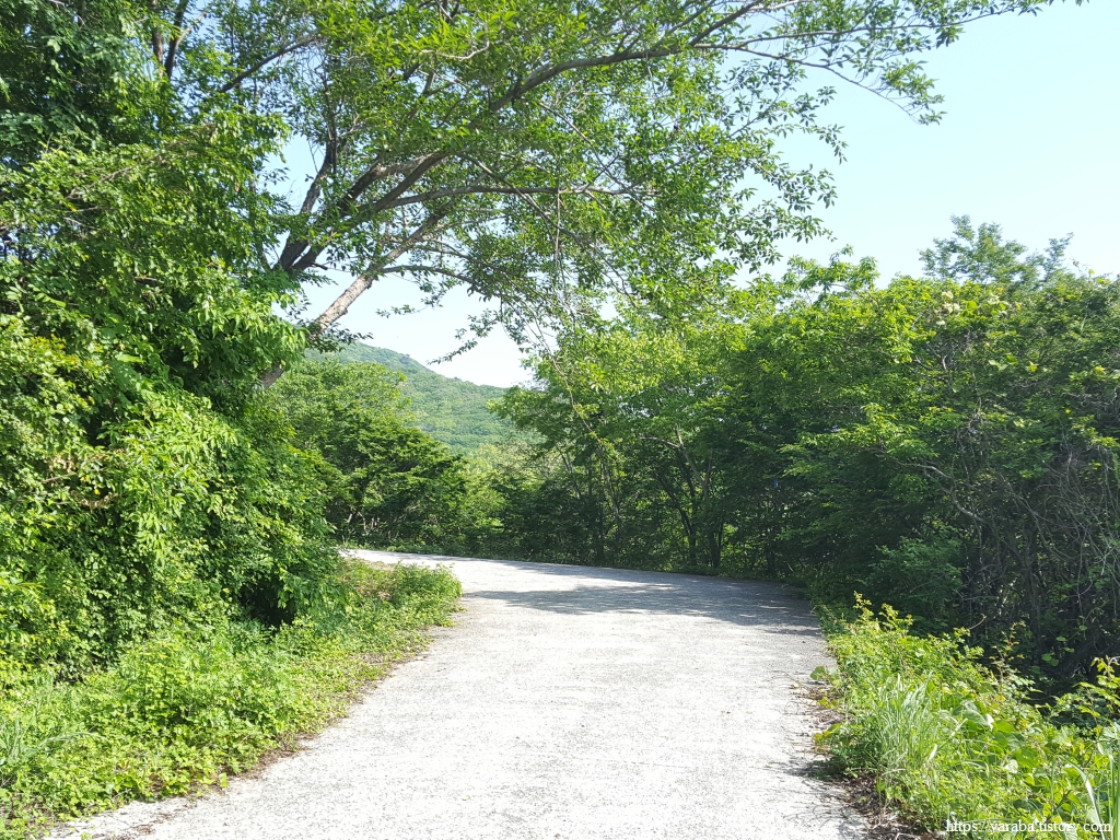 들길을 조금 더 걸으면 포장도로를 만나서 도로를 따라 올라간다.