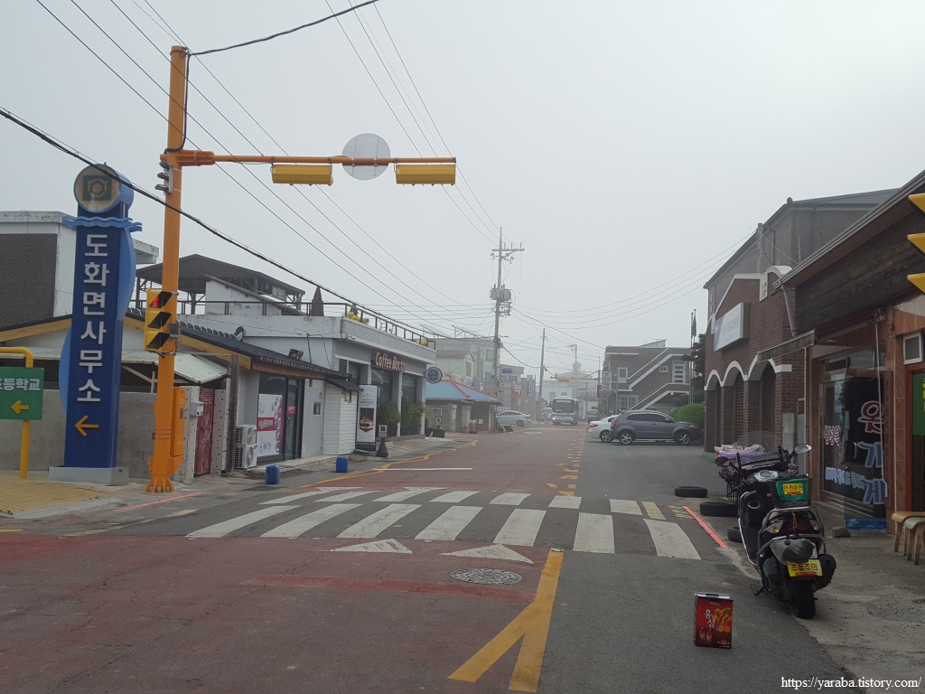 안개가 가득한 도화 읍내를 관통한다. 평일의 이른 아침 읍내는 한산하다. 장이라도 열리면 분주할 텐데 도화 재래시장의 3일, 8일 오일장이 열리는 날도 아니다.