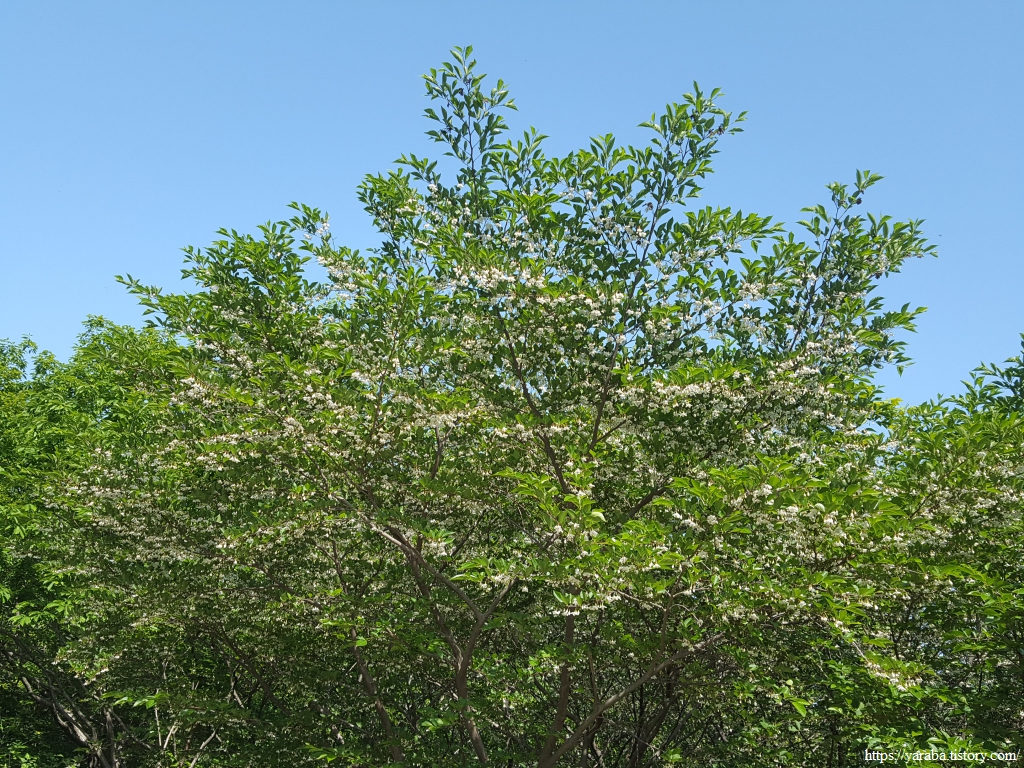 짙은 향기와 예쁜 꽃으로 우리의 감각을 깨우는 때죽나무 아래서 잠시 기운을 북돋운다. "'붕붕붕 꽃 향기를 맡으면 힘이 솟는 꼬마 자동차" 하는 꼬마자동차 붕붕이가 된 느낌이다.