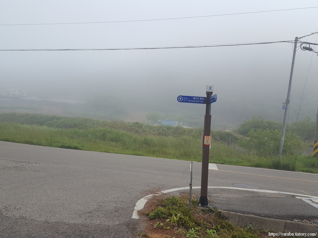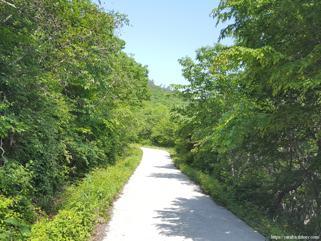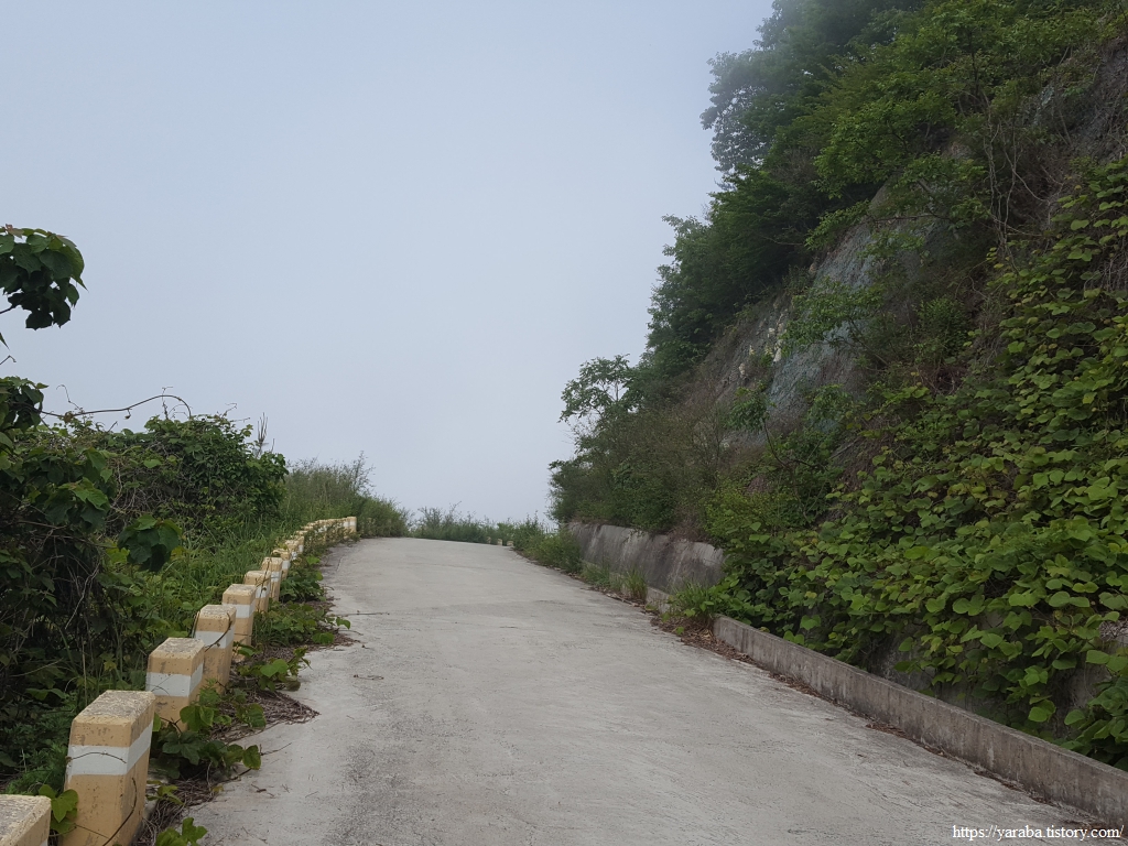 본격적으로 임도를 오르는 길, 산 능선을 보면 고도가 높아질수록 해무가 점점 옅어지는 느낌이다.