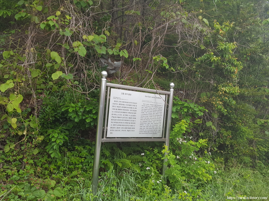 고려시대 산성으로 추정하는 고흥 오치 음성에 안내판이 서있었다. 산 깊숙하게 들어가야 그 흔적을 볼 수 있지만, 인근에 고흥 독치성과 고흥 백치성도 있다고 한다. 오치 음성을 비롯하여 모두 전라남도 기념물로 관리되고 있다. 위성사진으로 보면 독치성과 백치성은 그 흔적이 선명하게 남아 있지만 오치음성은 2.6km에 이르는 대규모 성임에도 불구하고 흔적을 찾을 수 없었다. 그래서 이름을 오치음성이라 부르는 모양이다.