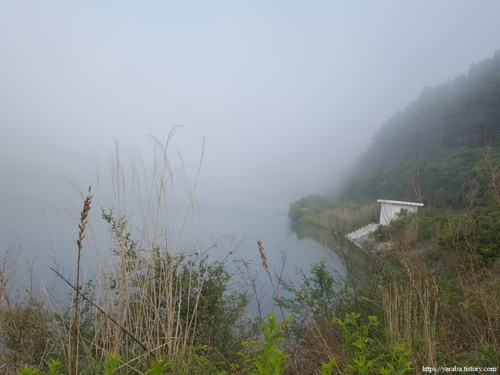 해무가 가득한 이른 아침의 신호제 저수지는 신비한 분위기 마저 든다.
