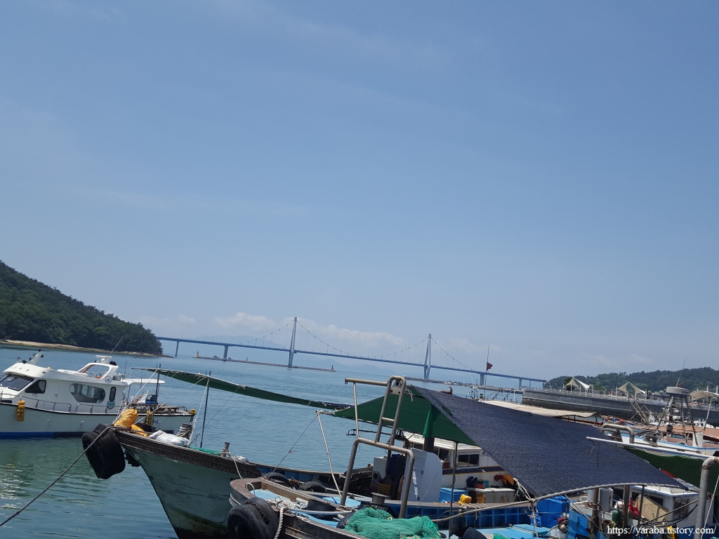 녹동 신항 전면으로는 거금도가 커다랗게 자리하고 있고 우측으로는 소록도 방파제의 등대와 함께 소록도와 거금도를 잇는 거금대교가 보인다. 여객선들은 저 거금대교 아래를 통과한다. 거금도가 이렇게 큰 섬이라는 것을 여기서 알게 된다. 2Km가 넘는 거금대교가 들어선 것이 2011년이니 그리 오래되지도 않았다. 거금도는 주위의 작은 섬들과 함께 고흥군 금산면으로 묶여있다.