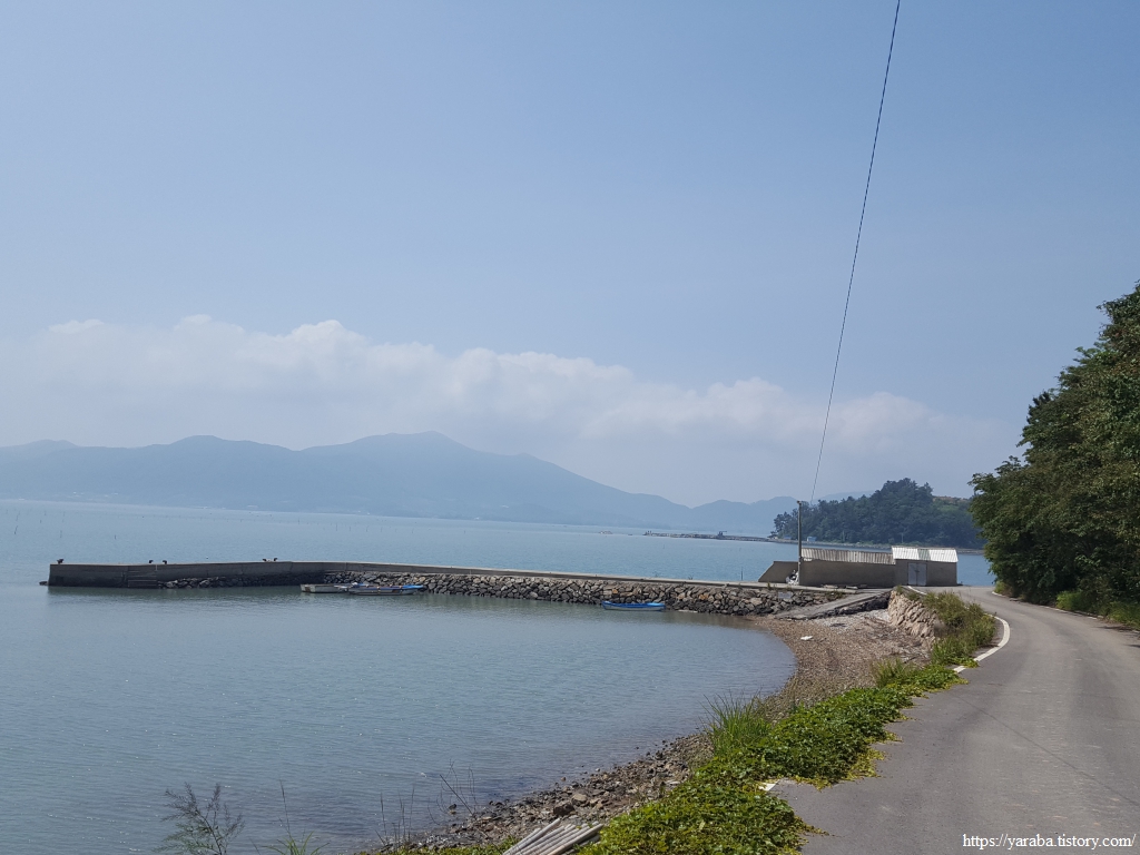 해안 제방길이 끝나면 작은 어항을 만나는데 길은 어항을 돌아서 녹동항으로 간다. 일단 천마로 국도로 나간다.