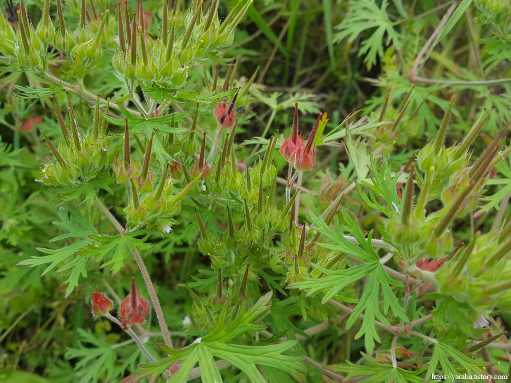 붉은빛이 도는 독특한 꽃을 만났다. 북아메리카 원산의 한해살이 풀인 미국 쥐손이풀이다. 그런데 창처럼 길게 뻗어 나온 것은 꽃이 아니라 다섯 장의 꽃 잎을 가진 하얀 꽃이 지고 그 자리에 맺힌 열매, 씨앗이었다. 미국이나 중국에서는 골치 아픈 잡초라고 한다. 늘 그렇듯이 누군가에게는 잡초이지만 누구에게는 귀한 약으로 쓰이는 식물이다.