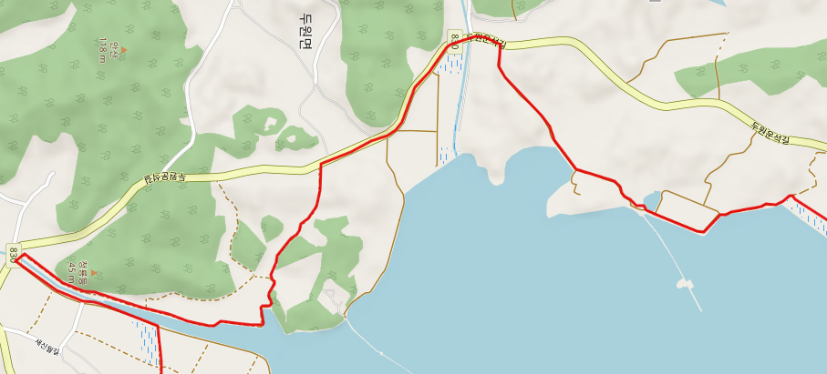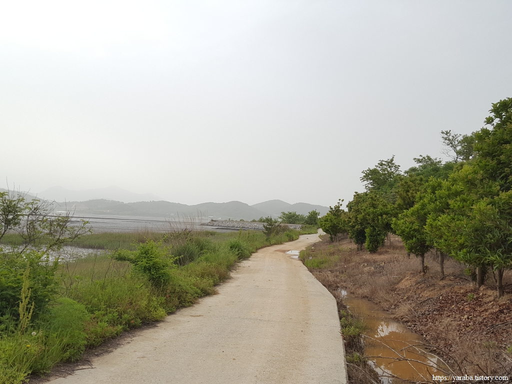 작은 방조제의 둑방길을 지난 길은 도로가 지나가는 방향으로 해안을 뒤로하고 내륙으로 들어간다.