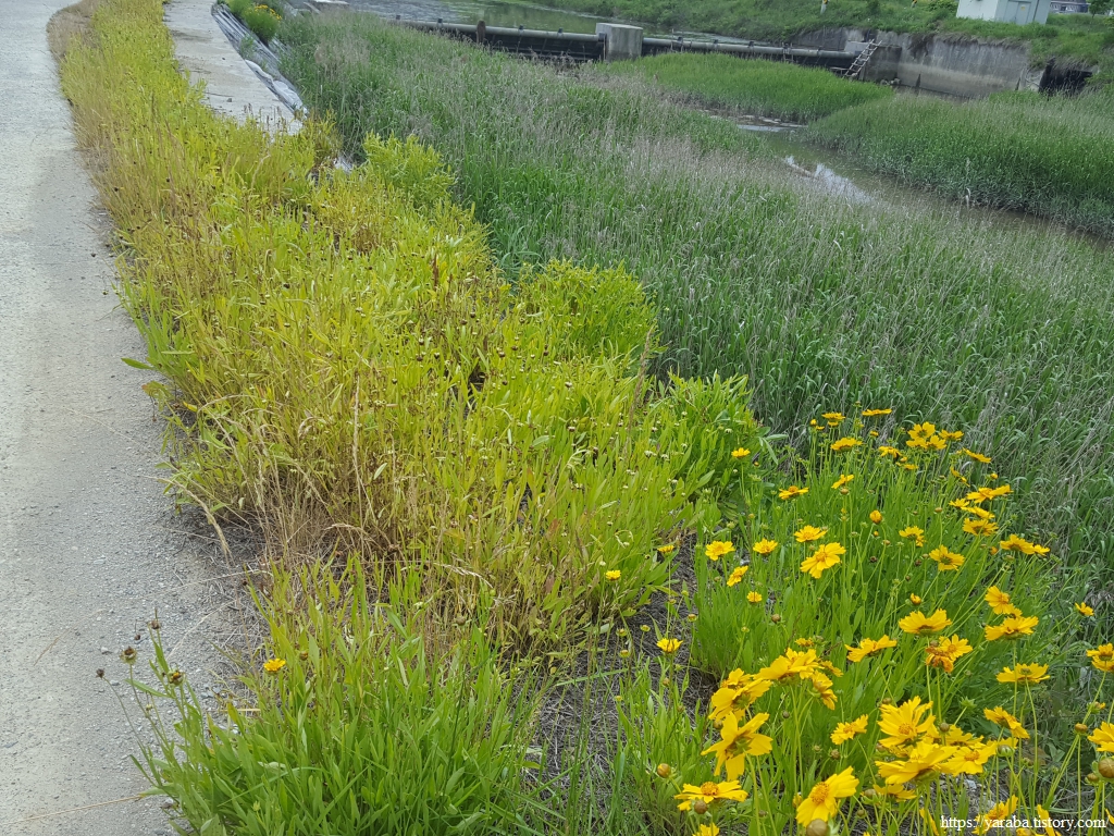 용산천 반대편 둑방길은 큰금계국 천지다.