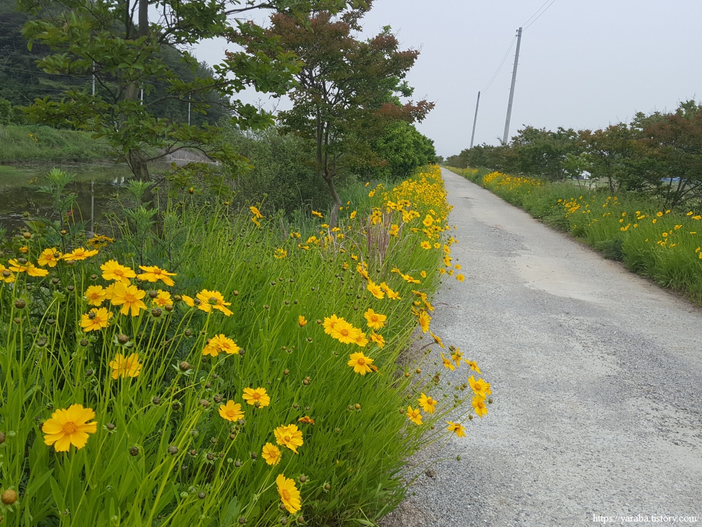 제초제 샤워를 하고 말라가는 큰금계국을 보는 것이 유쾌하지는 않았지만 농부의 심정을 헤아릴 수도 있어서 할 말이 없었다. 씨앗으로도 퍼지지만 뿌리로도 번식을 하니 행정기관은 주의가 필요하겠다 싶다. 실제로 큰금계국이 자리한 곳에는 다른 식물들은 눈을 씻고 찾아도 찾을 수 없다. 예쁜 꽃과 다르게 무서운 놈이다.