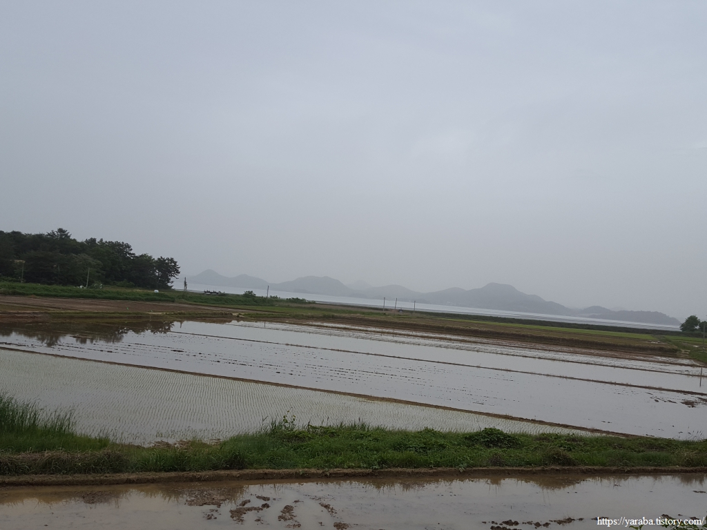 언덕에서 내려오면 농로를 통해 동쪽으로 이동하여 해변으로 나간다. 이곳의 논들은 모내기할 기미도 없다. 비싼 농기계를 가지고 최대의 효율을 내려면 많은 농지들을 시간차를 가지고 넉넉한 기간으로 순차적으로 일을 해야 될 것이다. 자급자족 수준의 농업이 아닌 농업 경영은 결코 간단하지 않은 일이다.
