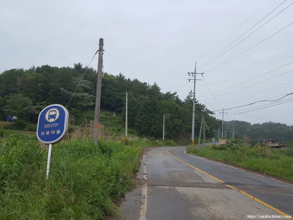 도야 마을 정류장에서 잠시 쉬었다 간다. 이곳에서 북쪽 해안으로 가면 과역면과 남양면을 이어주는 방조제가 있는데 방조제가 생기면서 이곳이 과역면과 남양면을 이어주는 길목이 되었다 해서 도야라 이름했다고 한다.