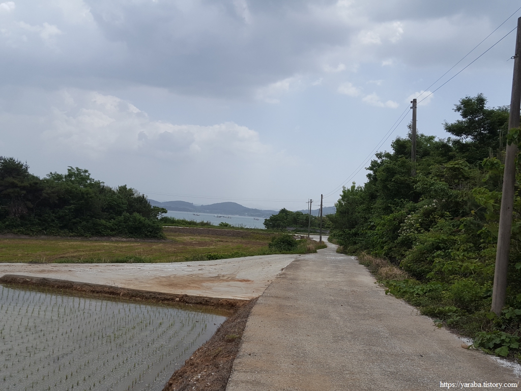 길은 마을 고개를 넘어 산 아랫자락으로 이어진 농로를 따라서 해안으로 나간다.