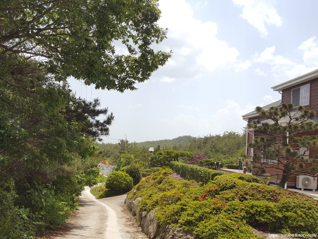 고개를 넘어가는 길에는 우측으로는 3만 2천 평방미터(약 9,700평)가 넘는 대형 시설 재배를 하는 농가가 있고 좌측으로는 2021년 전라남도 정원 페스티벌에서 개인부문 최우수상을 받은 우림원이라 이름한 정원이 있었다. 산 전체를 정원으로 꾸며놓은 곳인데 그래서 그런지 이곳을 빠져나가는 길은 울타리 나무조차도 깔끔하게 정돈되어 있었다.